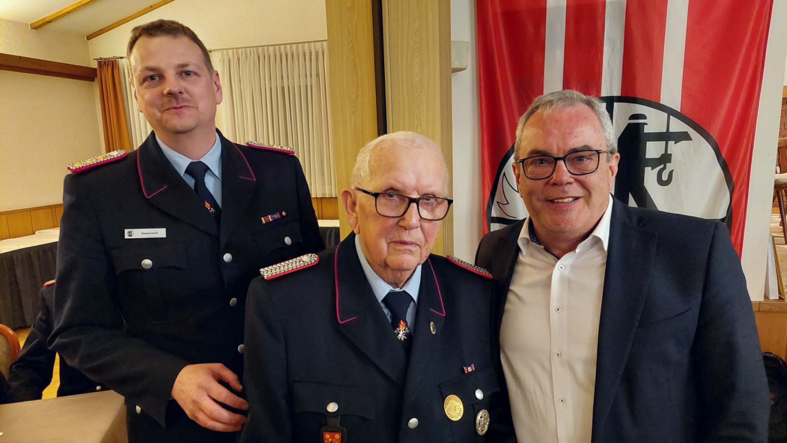 Westerhof (red). Ein seltenes Doppeljubiläum konnte die Ortsfeuerwehr Westerhof am Dienstag, 16. September, feiern: Manfred Jensch wurde zu seinem 95. Geburtstag beglückwünscht und zugleich für 70 Jahre Mitgliedschaft in der Feuerwehr geehrt.