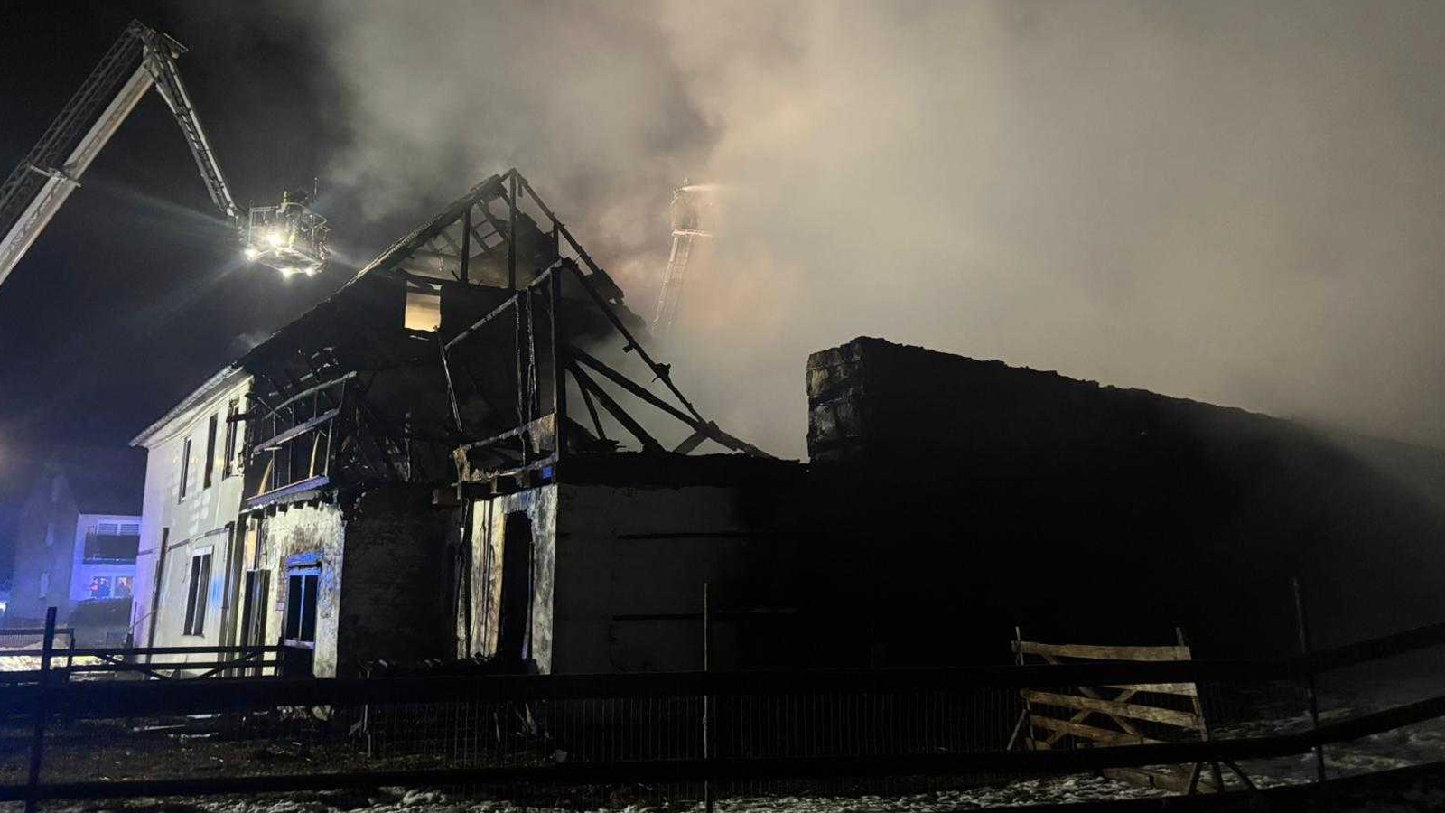 Neben der Feuerwehr waren weitere Einsatzkräfte zur Absicherung der Brandstelle im Einsatz. Die Nachlöscharbeiten gestalteten sich aufgrund der starken Brandentwicklung und der baulichen Gegebenheiten aufwendig. Eine Gefährdung weiterer Gebäude konnte nach bisherigen Erkenntnissen verhindert werden.