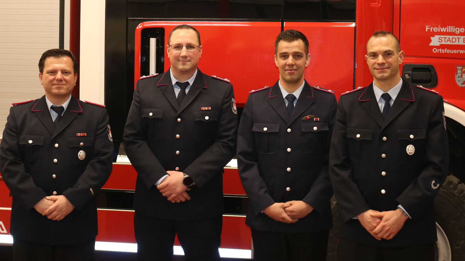 Der damalige Stadtbrandmeister Lars Lachstädter beförderte Hannes Kelpe zum Oberfeuerwehrmann, Malte Panzenhagen zum 1. Hauptfeuerwehrmann, Jens Jacke zum Löschmeister und Nikolas Dickhuth zum Oberbrandmeister.