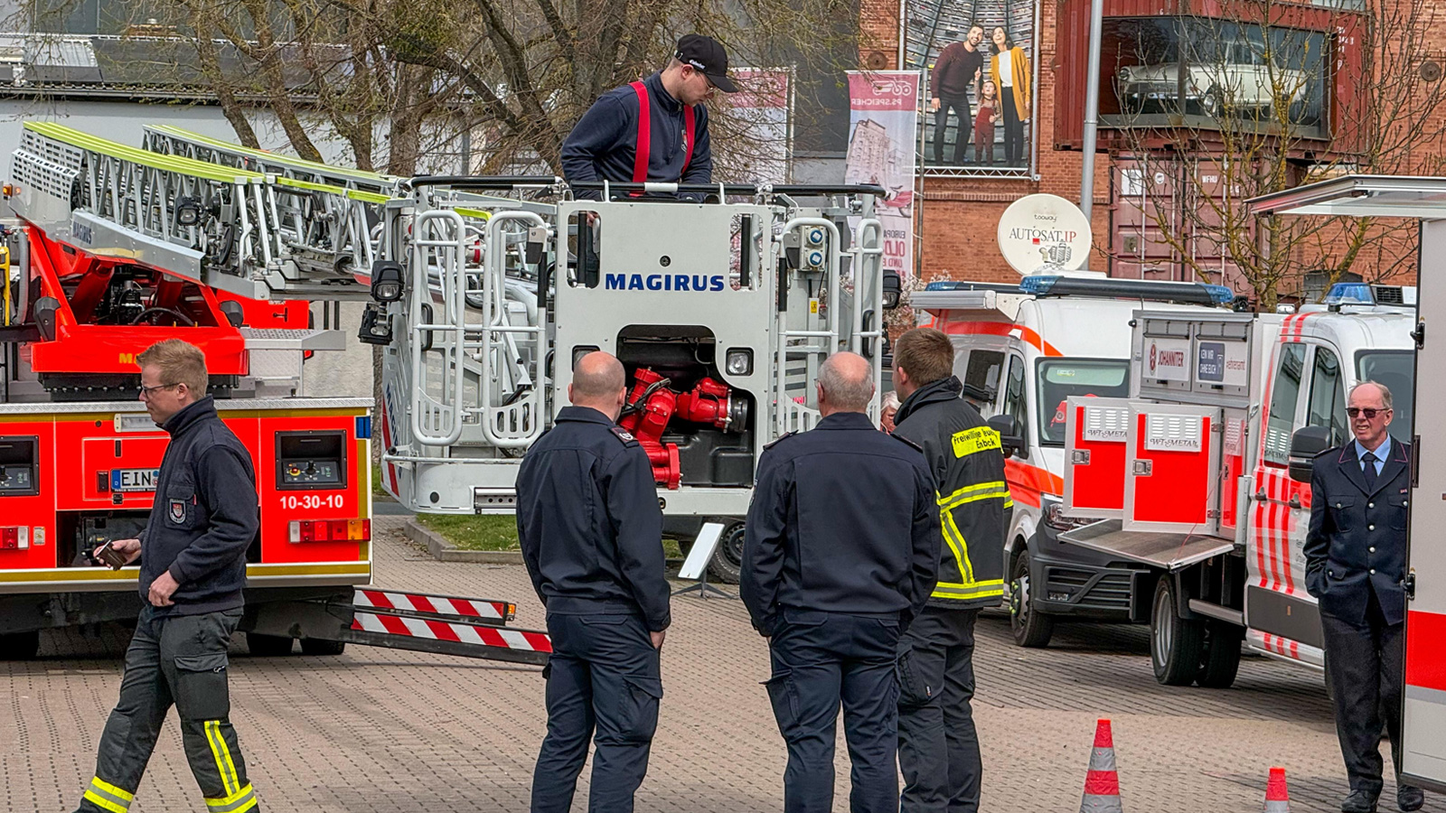 Auf der Freifläche konnten sich die Teilnehmer ein praxisnahes Bild machen: Die Fachgruppe Logistik und Technik, die Ortsfeuerwehr Wolperode mit ihrem neuen Tragkraftspritzenfahrzeug mit Wassertank, die Verpflegungskomponente und Rettungshundestaffel der Johanniter, das Einsatzstellen-Sicherungs-System des Technischen Hilfswerks, die Feuerwehr Einbeck mit der Drehleiter sowie der Warntrupp Bodenfelde gemeinsam mit dem Führungsdienst des Fachzuges stellten ihre Fähigkeiten vor und gaben Einblicke in den Einsatzalltag.