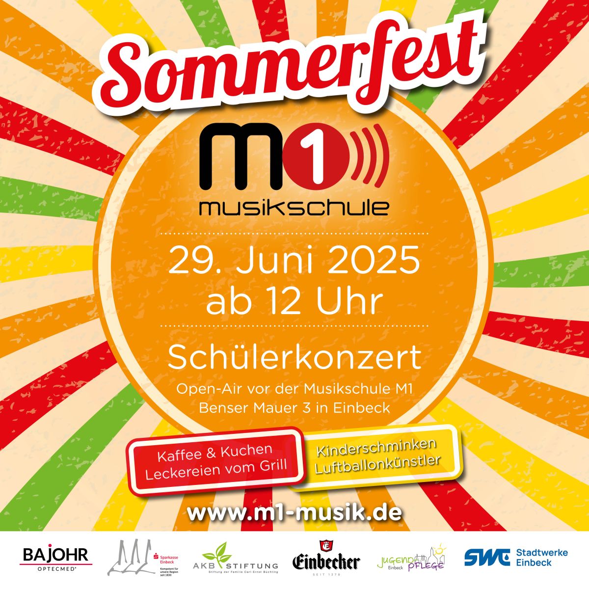 Das Fest wird unterstützt von der Stadtjugendpflege Einbeck, Bajohr Optecmed, der AKB-Stiftung, dem Einbecker Brauhaus, den Stadtwerken Einbeck und der Sparkasse Einbeck.