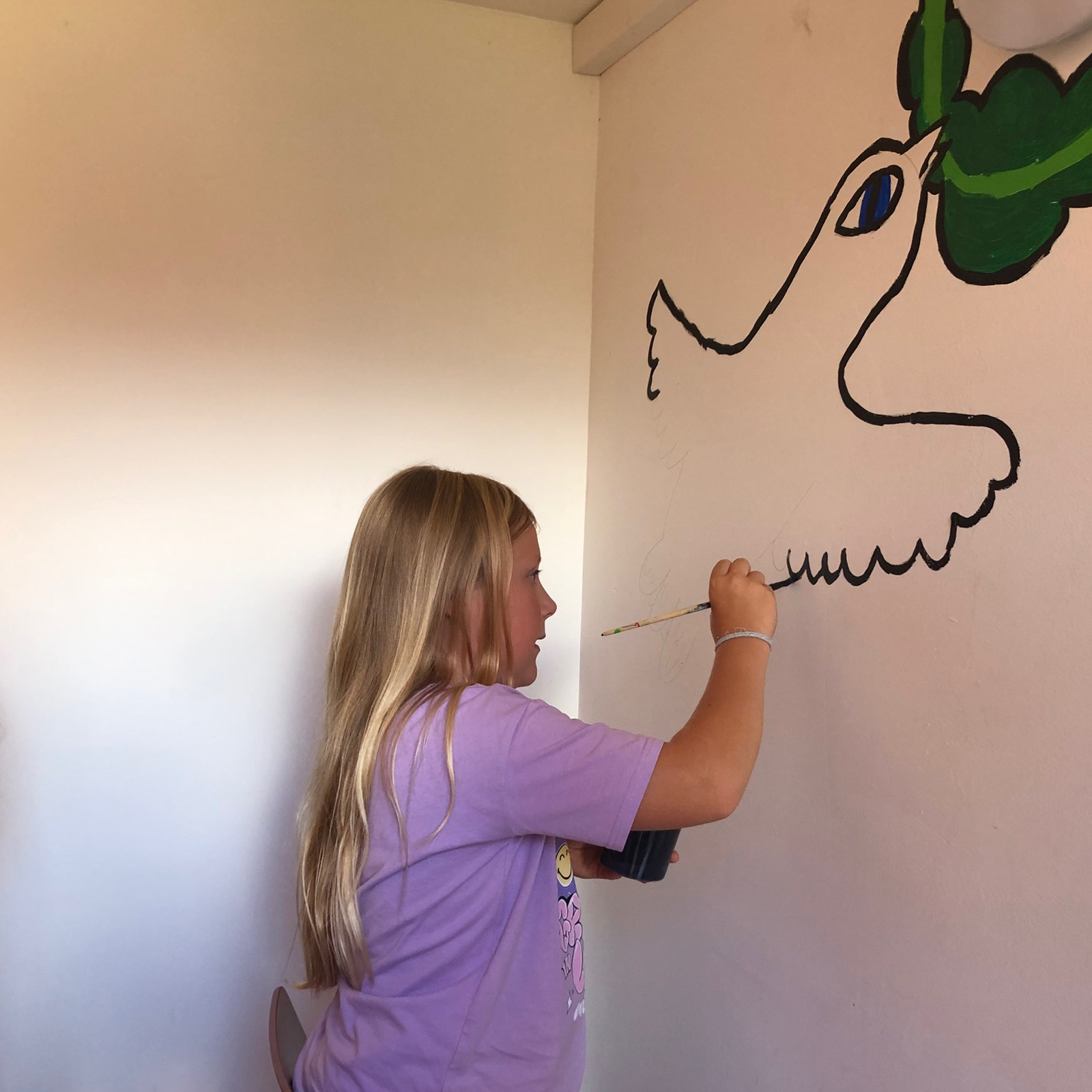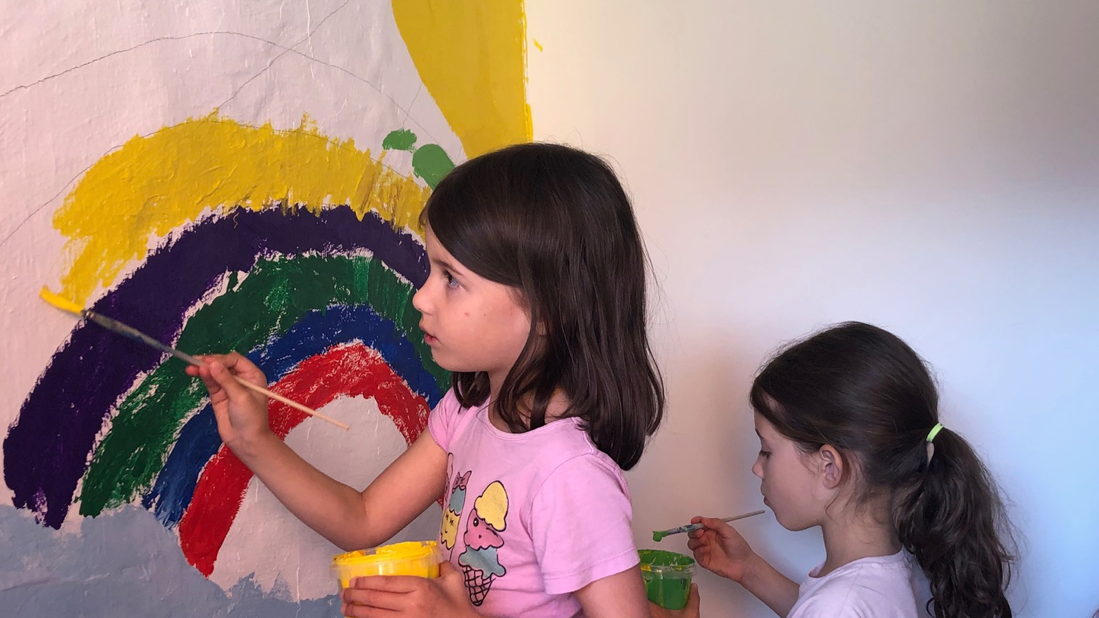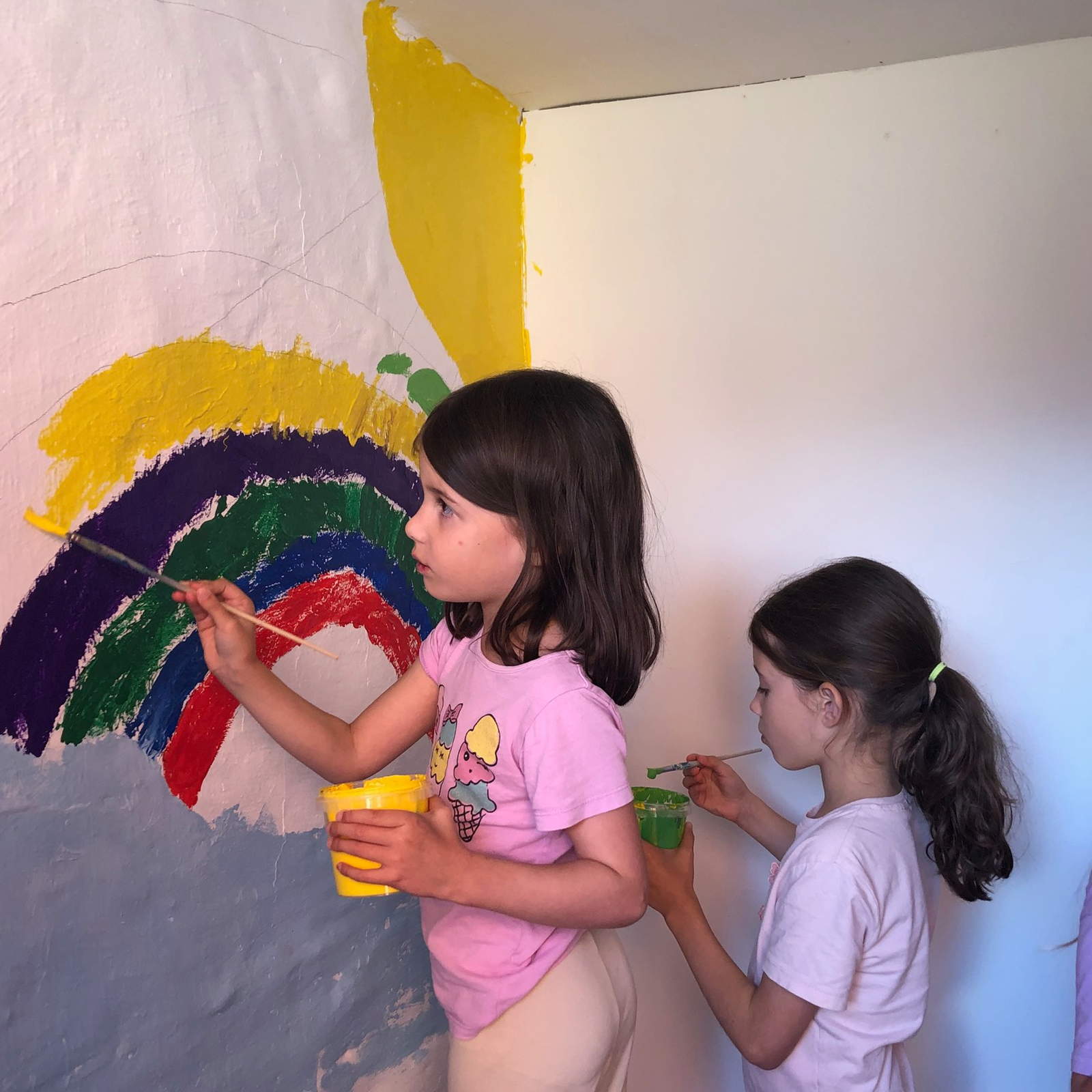 Mit viel Kreativität und Spaß malten Jonah, Amilia, Paula, Josefine und Tamina an der farbenfrohen Gestaltung. Jonah, der besonders gern Flüsse malt, widmete sich dem Wasserlauf, während Tamina gemeinsam mit ihrer Mutter Ann-Kathrin an der Arche arbeitete. Später kam Milena hinzu und setzte eigene Akzente. Besonders Amilia, die zu Besuch bei ihrer Freundin Josefine war, hatte so viel Freude, dass sie am liebsten immer weitergemalt hätte.