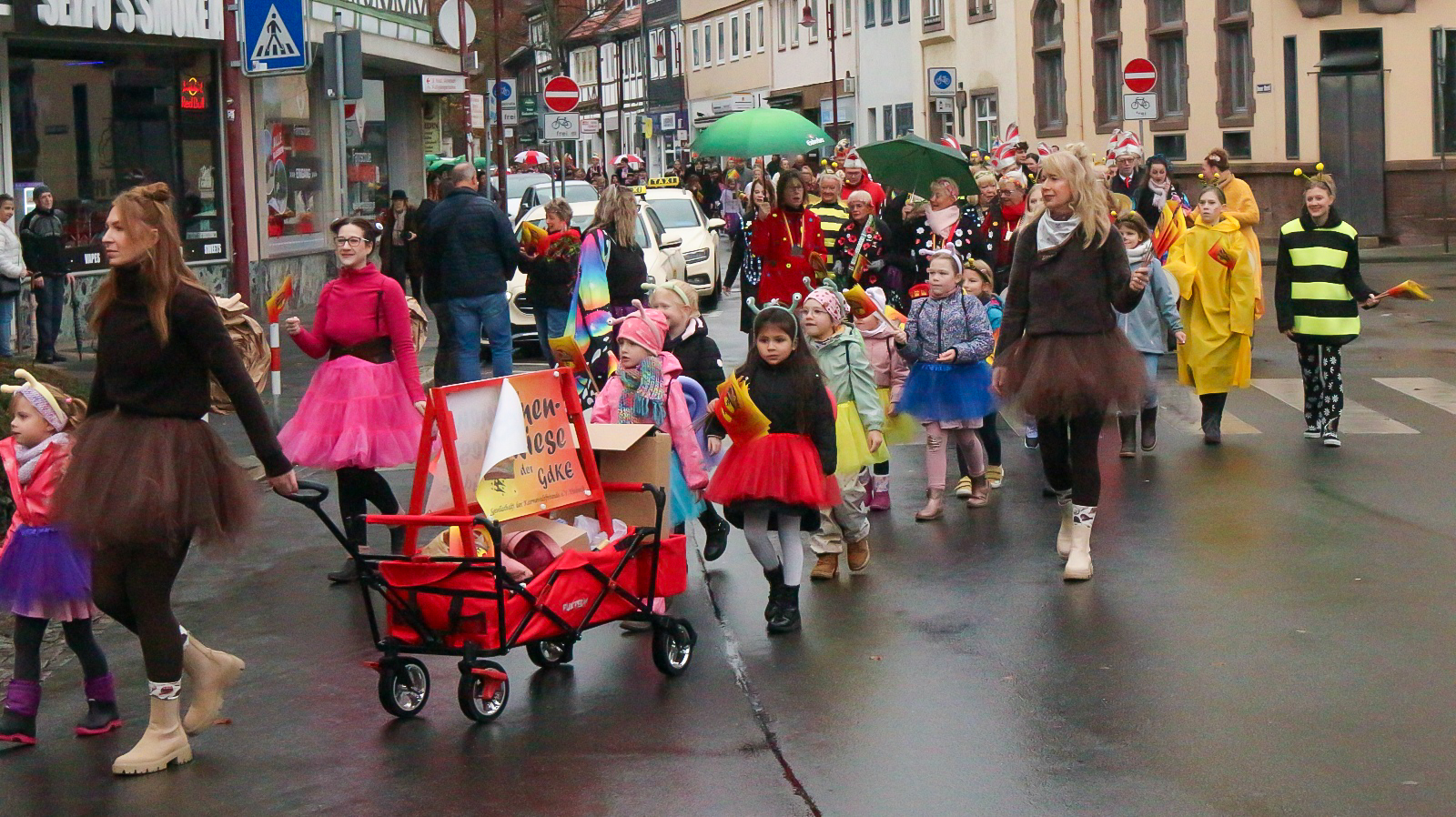 Einbeck (red). Mit einem farbenfrohen Umzug hat die Gesellschaft der Karnevalsfreunde Einbeck e. V. (GdKE) am Samstag offiziell den Startschuss für die fünfte Jahreszeit gegeben. Gemeinsam mit befreundeten und benachbarten Vereinen setzte sich der närrische Tross an der Mendelsohn-Musikschule in Bewegung, begleitet vom Spielmannszug Amelsen. Angeführt wurden die Jecken vom Prinzenpaar Lisa I. und Kai I. sowie dem Kinderprinzenpaar Liah I. und Anton I.