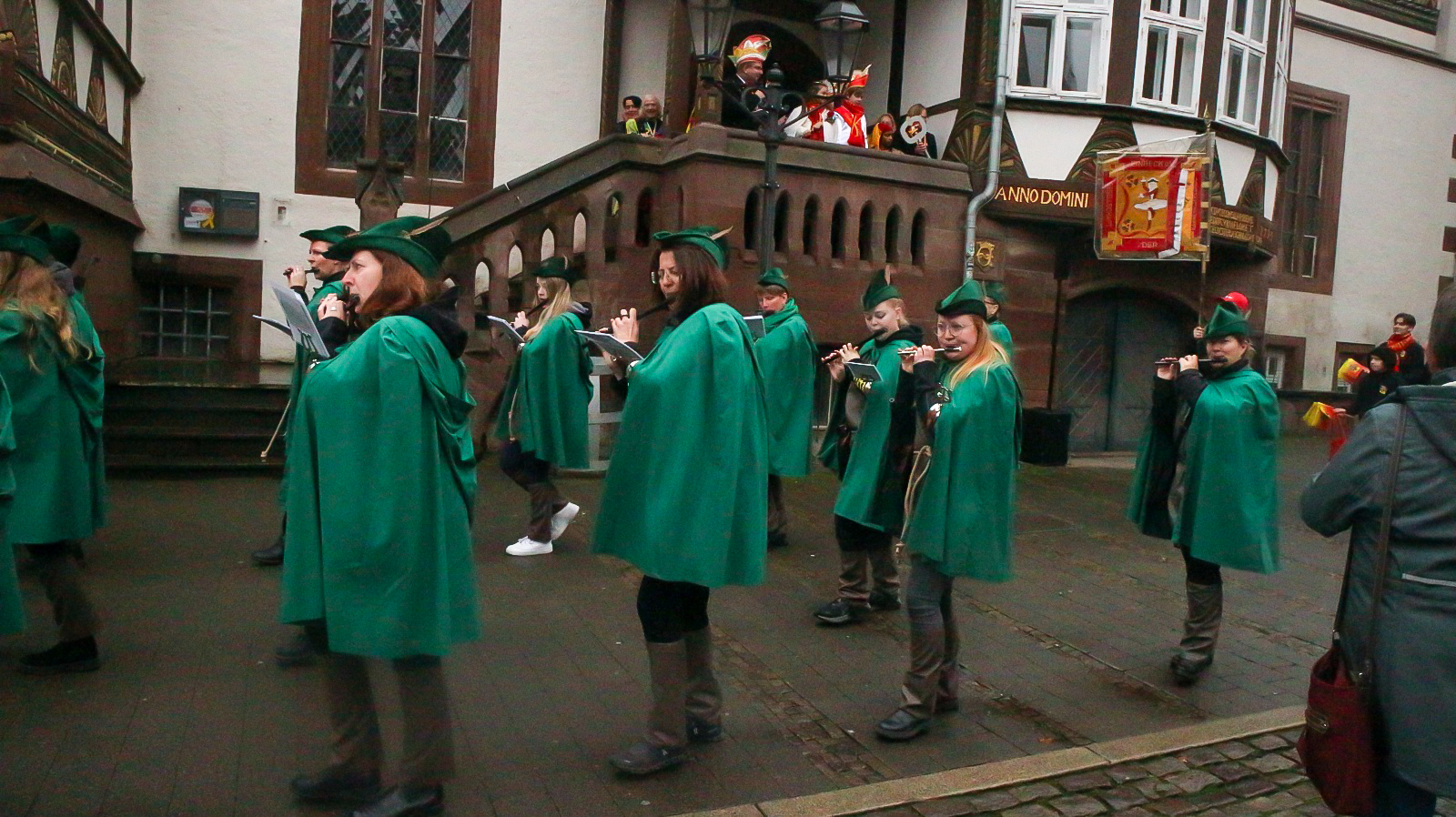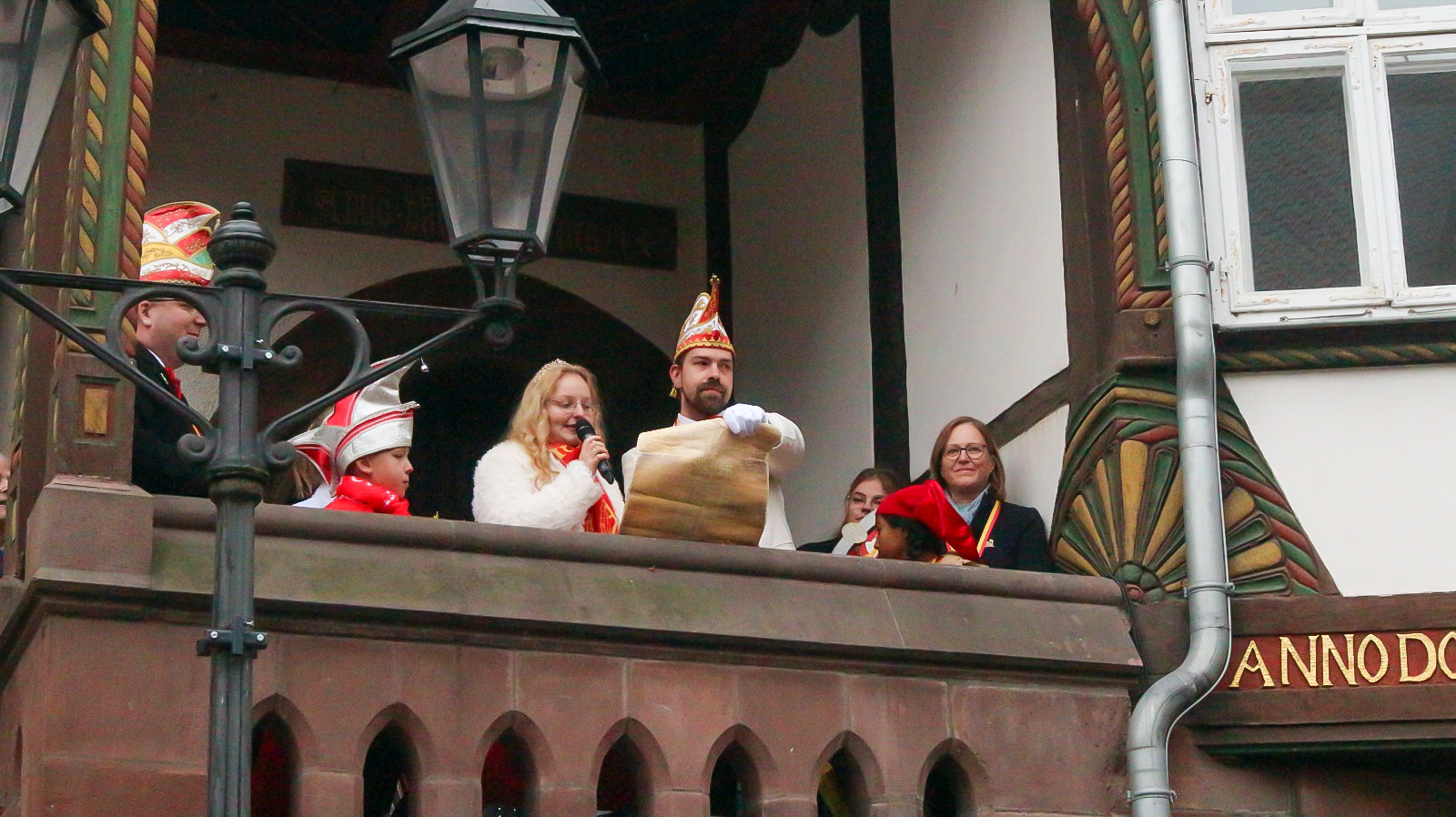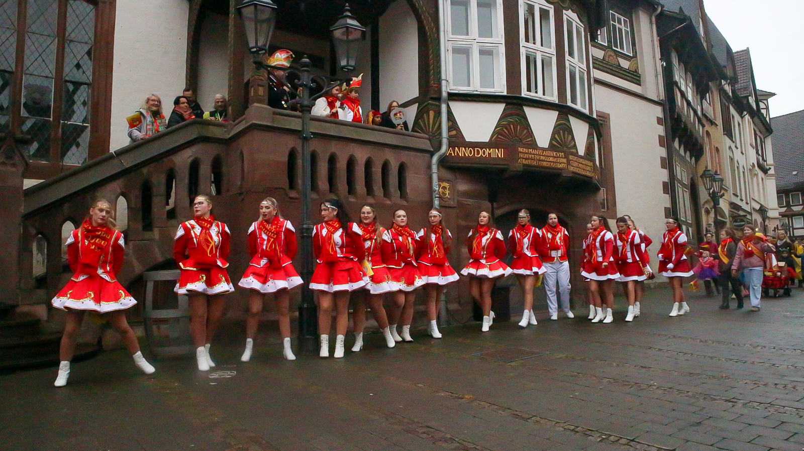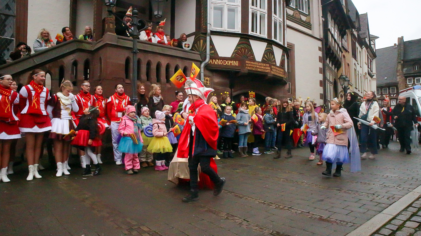 Traditionell führte der Weg die Karnevalisten schließlich zum Alten Rathaus. Dort forderten sie lautstark den begehrten Rathausschlüssel ein. Angesichts der farbenfrohen Übermacht blieb Bürgermeisterin Dr. Sabine Michalek nichts anderes übrig, als den Schlüssel feierlich zu überreichen – und damit den Einbecker Narren die Herrschaft über das Rathaus für die kommenden vier Monate zu überlassen.