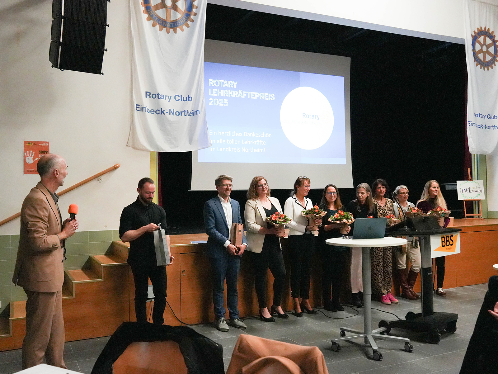 Einbeck (zir). Der Rotary Club Einbeck-Northeim hat seinen Lehrkräftepreis 2025 zum dritten Mal verliehen – nach 2021 und 2023 – und damit erneut ein leuchtendes Zeichen der Wertschätzung für engagierte Lehrpersonen gesetzt. In einer bewegenden Feier am Donnerstagabend an der BBS Einbeck würdigte der Club jene Pädagoginnen und Pädagogen, deren Einsatz oft unsichtbar bleibt, im Mittelpunkt zu stehen.