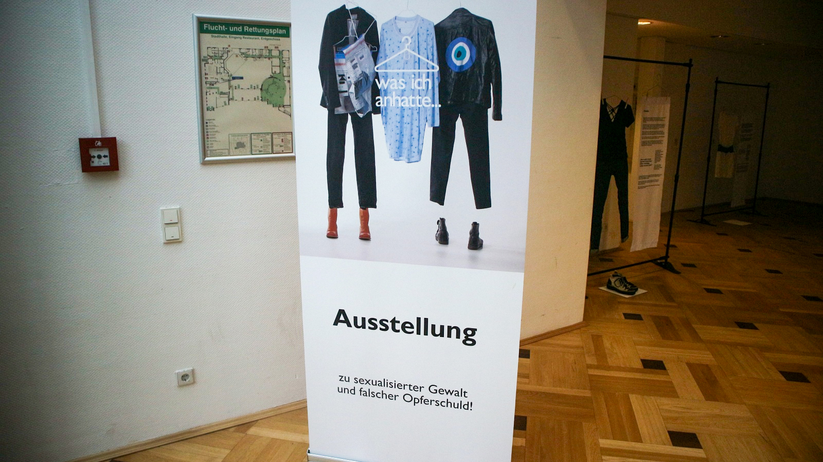 Die Ausstellung zeigt Kleidungsstücke von Menschen, die sexualisierte Gewalt erlebt haben – ein kraftvolles Gegenbild zu der weit verbreiteten, aber falschen Täter-Opfer-Umkehr, die Betroffenen die Verantwortung für die Tat zuschreibt.