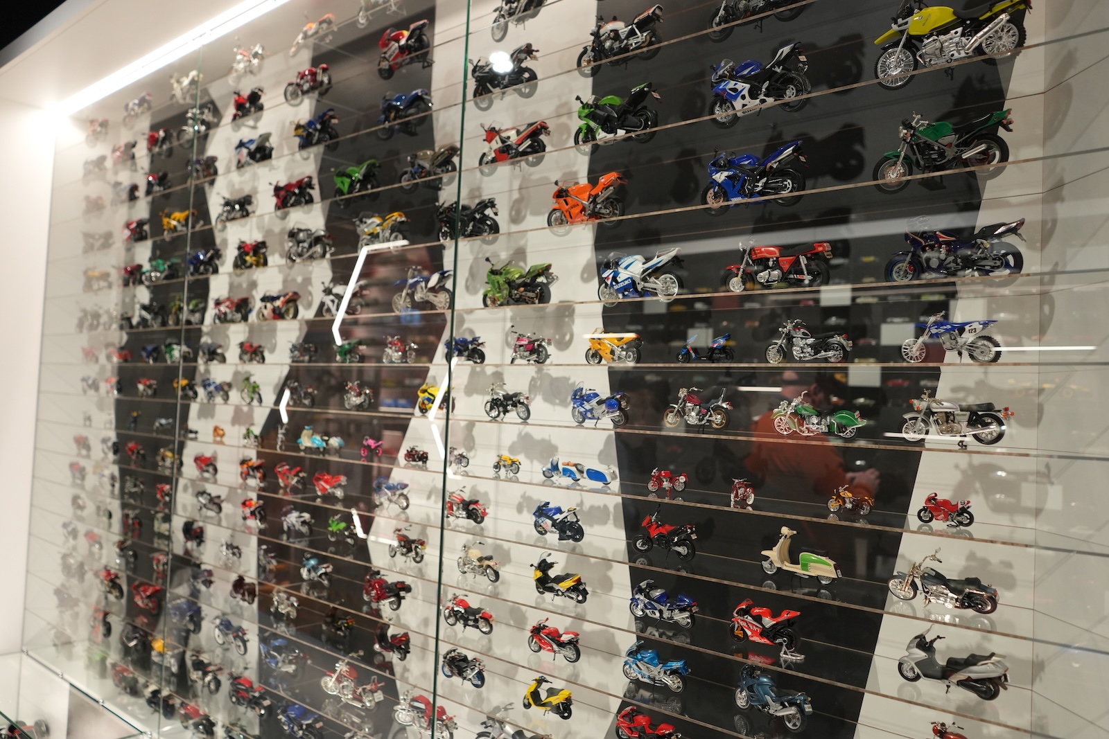 Mehrere der gezeigten Objekte sind nicht nur als Modell, sondern auch als reales Fahrzeug im PS.Speicher zu finden. Wie bei den Originalen handelt es sich auch bei vielen Modellen um Leihgaben. Die Leihgeberinnen und Leihgeber erzählen ihre ganz eigenen Geschichten – darunter auch PS.Speicher-Gründer Karl-Heinz Rehkopf. Von ihm stammt ein besonderes Stück der Ausstellung: ein Modell des Benz Patent-Motorwagens Victoria, gefertigt aus Papier vom brasilianischen Künstler Francisco Iorio. Rehkopf erhielt es als Geschenk seiner Frau zu seinem 80. Geburtstag. Die Faszination für Fahrzeuge ende für ihn auch im Miniaturbereich nicht.