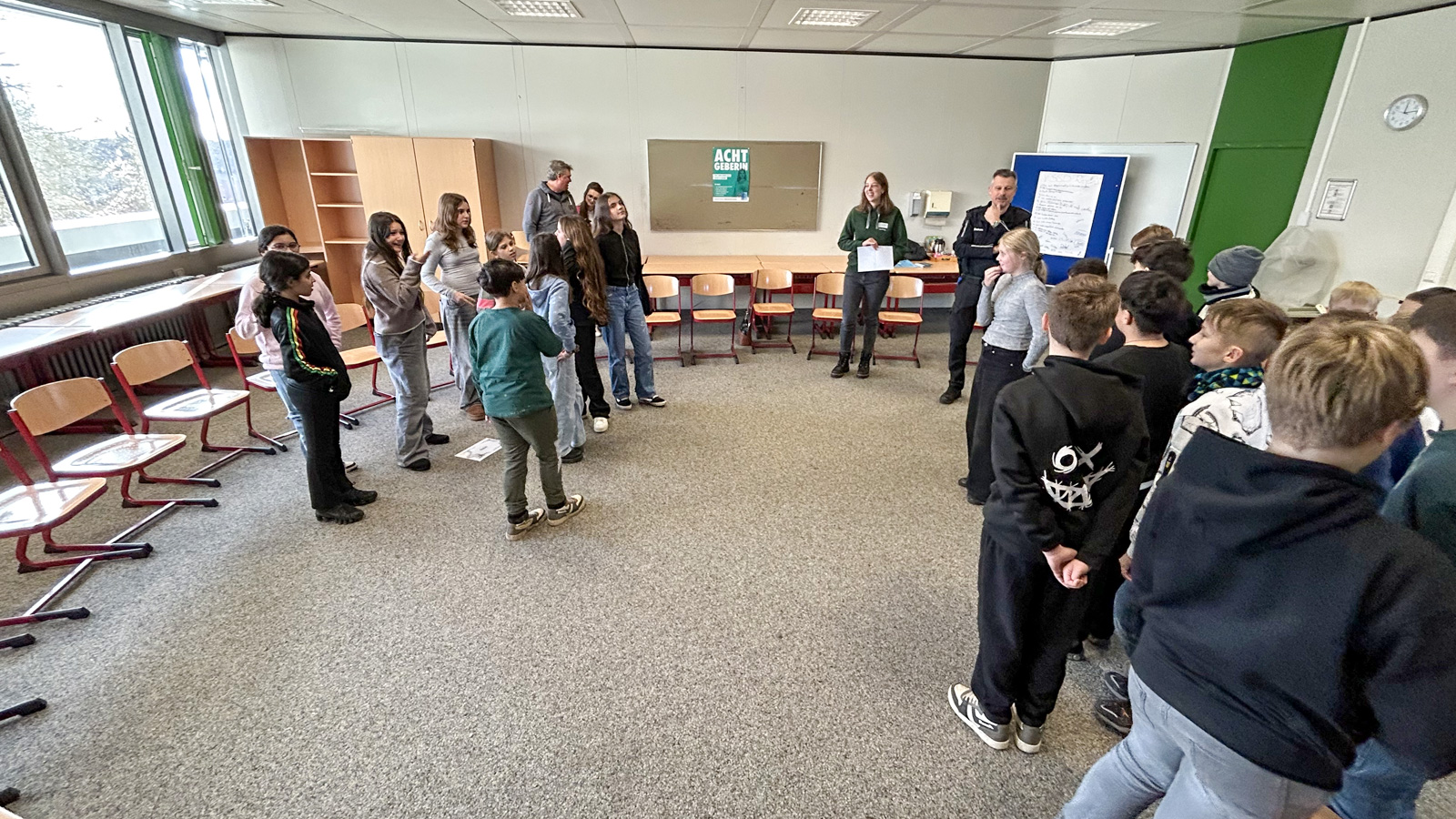 In jeweils 90 Minuten pro Klasse informierten Lisa König vom Lukaswerk Northeim und Thomas Sindram vom Präventionsteam der Polizei im Landkreis Northeim über Konsumformen, Inhaltsstoffe und gesundheitliche Risiken von Vapes, Shishas und weiteren Nikotinprodukten. Die Schülerinnen und Schüler brachten dabei bereits umfangreiche Kenntnisse, aber auch Sorgen und persönliche Eindrücke ein. Deutlich wurde, dass sich der Konsum von klassischen Zigaretten zunehmend auf Vapes und Wasserpfeifen verlagert. Obwohl auch diese Produkte erst ab 18 Jahren erlaubt sind, wissen viele Kinder bereits, was E-Zigaretten sind und welche Gefahren sie für die Gesundheit bergen.