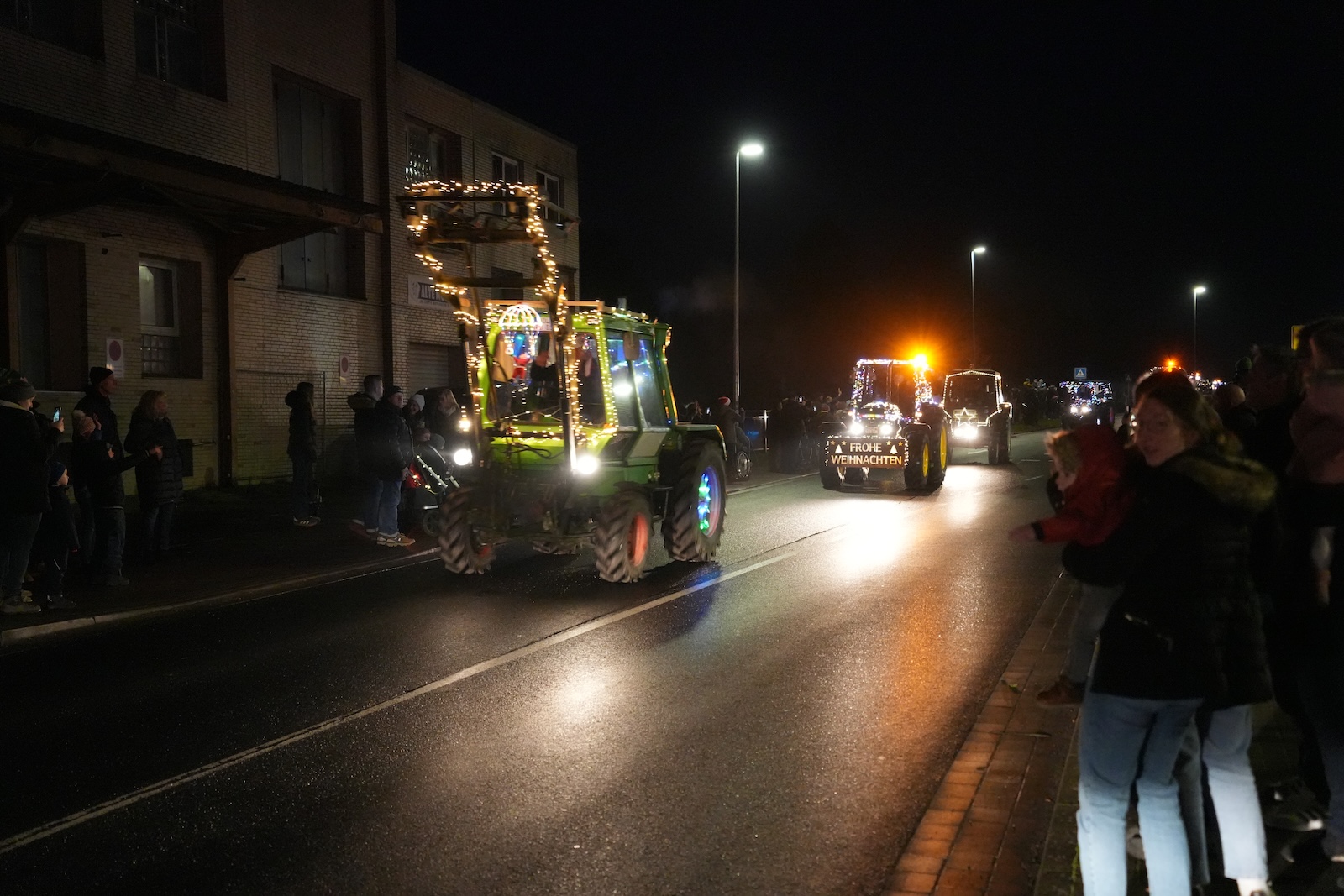 Dassel/Einbeck (lbr). Mit festlich geschmückten Fahrzeugen und leuchtenden Augen am Straßenrand ist am gestrigen Samstag um 17 Uhr der erste Teil der großen Lichterfahrt gestartet. Rund 130 Fahrzeuge – überwiegend Trecker, aber auch einige Lkw sowie Oldtimer-Lkw und Busse aus dem PS.Speicher in Einbeck – rollten durch zahlreiche Ortschaften und begeisterten tausende Zuschauer entlang der Strecke.