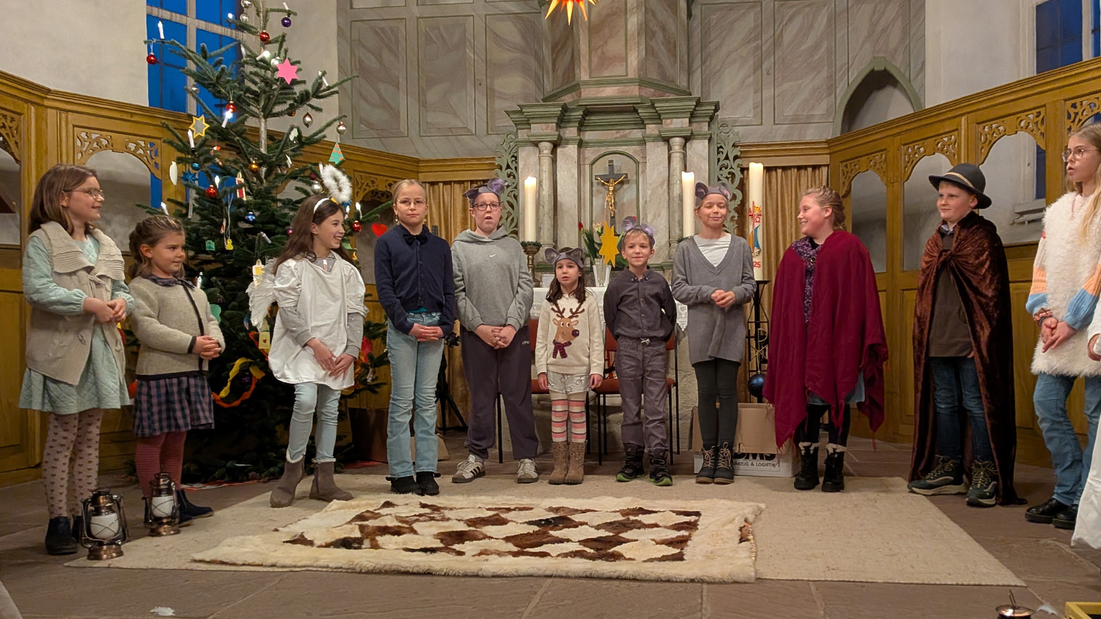 In mehreren Proben hatten dreizehn kleine und große Kinder das Krippenspiel gemeinsam erarbeitet und dabei eigene Ideen eingebracht. Am Ende wurden sie für ihre gelungene Aufführung mit viel Applaus belohnt.