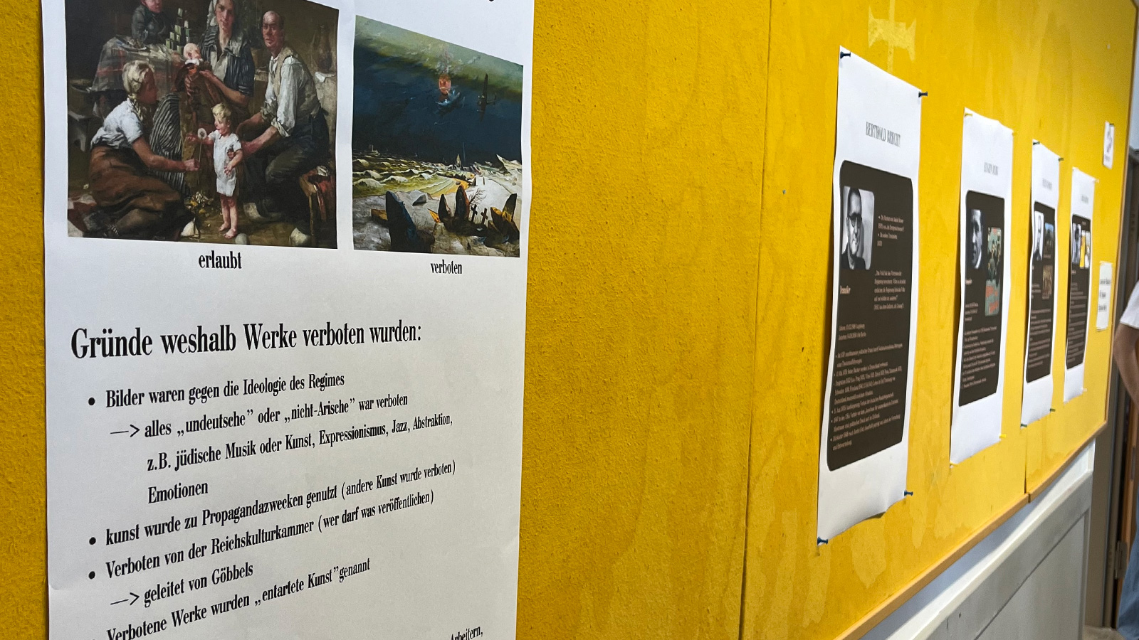 Weitere Stationen der Ausstellung thematisierten den Arbeitsalltag der Zwangsarbeiter, ihre Schlafstätten, die Überwachung sowie das Schreiben zensierter Briefe. Ergänzt wurde die Ausstellung durch Räume zur sogenannten entarteten Kunst, zum Leben der jüdischen Sportlerin Gretel Bergmann sowie zum Prozess gegen Adolf Eichmann. Zahlreiche interaktive Aufgaben luden dazu ein, sich mit den historischen Inhalten auseinanderzusetzen und Einfühlung sowie Nachvollzug zu fördern.