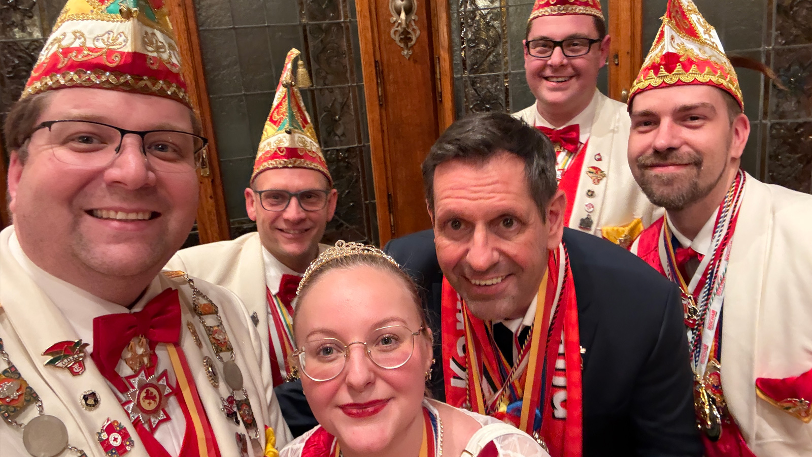Die Einbecker Delegation mit dem Prinzenpaar Kai I. und Lisa I., Präsident Jan Störmer sowie den Vizepräsidenten Philipp Jörns und Markus Henze nutzte die Gelegenheit, dem Ministerpräsidenten den Einbecker Sessionsorden zu überreichen. Die Geste wurde sichtbar mit Freude aufgenommen.