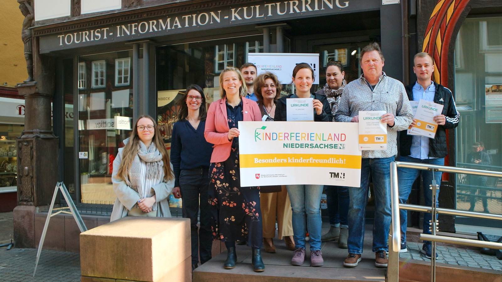 Einbeck (gs). Einbeck setzt ein deutliches Zeichen für Familienfreundlichkeit: In einer feierlichen Übergabe wurde die Stadt offiziell als „ReiseKinderland-Ort“ zertifiziert. Ulrike Lauerwald, Leiterin der Stabsstelle Public und Business Relations, und Tobias Bez, Teamleiter der Tourist-Information Einbeck, begrüßten hierzu Gesa Polster von der TourismusMarketing Niedersachsen GmbH (TMN) aus Hannover.