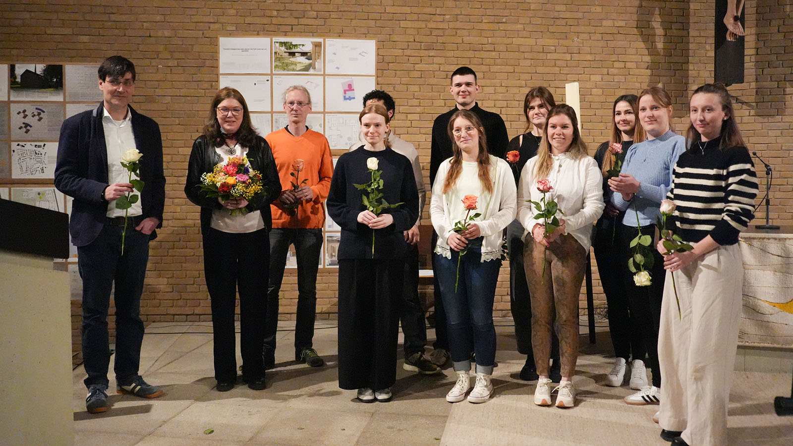 Im Anschluss standen die Studierenden sowie Professorin Franz und Sebastian Rommel für Fragen aus dem Publikum zur Verfügung. Für die Arbeiten gab es viel Anerkennung. Vor allem die Bandbreite der Ansätze und die unterschiedlichen Ausarbeitungen stießen auf positive Resonanz.