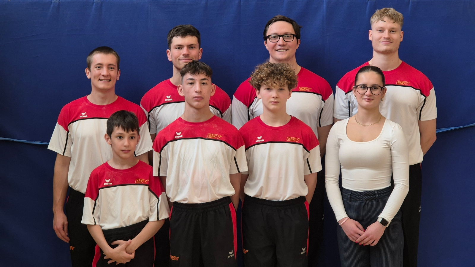 Zum Abschluss ging es an den Boden, dessen federnder Belag den Turnern entgegenkam. Merlin Grund nutzte die Gelegenheit und zeigte erstmals einen Rückwärtssalto mit anderthalb Schrauben – sicher und sauber ausgeführt. Das Fehlen von Frederik Odenthal machte sich an diesem Gerät allerdings am deutlichsten bemerkbar. Auch Imran Khatiev und Leon Ahrens kamen fehlerfrei durch, konnten jedoch aufgrund geringerer Schwierigkeit nur begrenzt punkten.