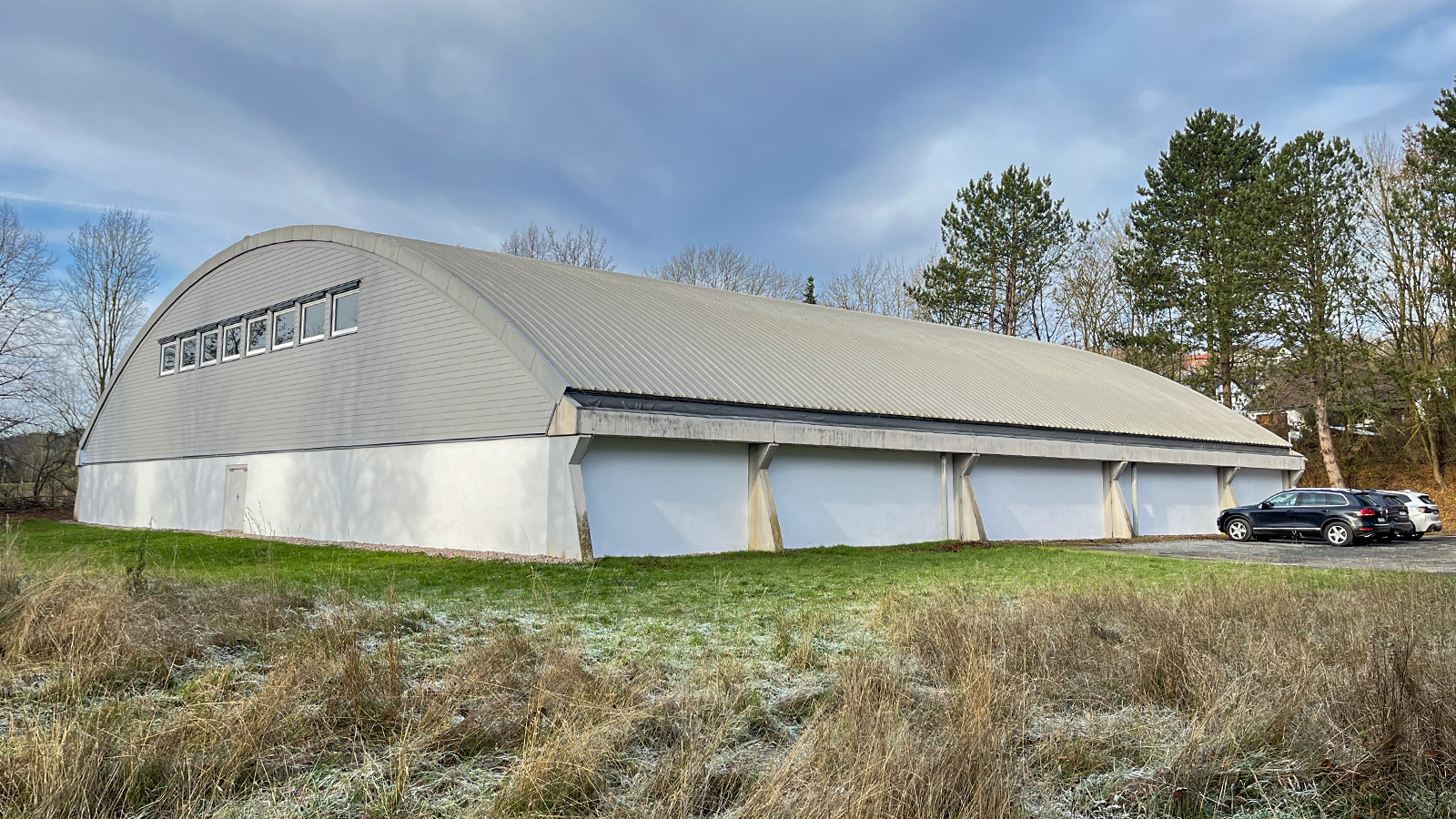 Die Sanierungsmaßnahmen betrafen alle wesentlichen Bauteile der Halle: Die alten Giebel an Nord- und Südseite wurden abgerissen und durch hochgedämmte Holztafelelemente ersetzt. Fenster und Eingangstür wurden erneuert, das Dach von innen gedämmt und die Außenwände mit einem Vollwärmeschutz versehen.