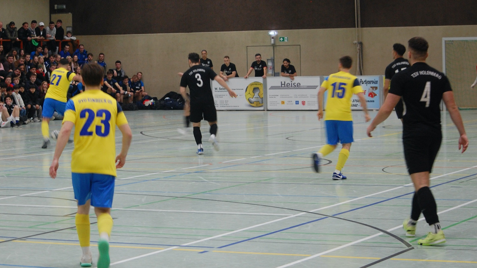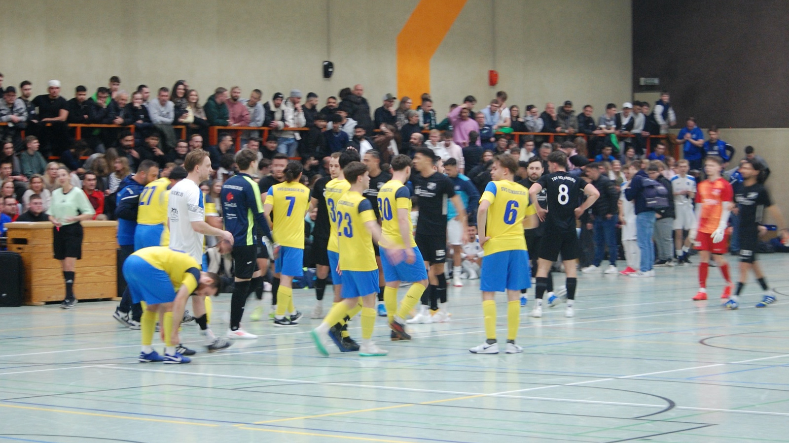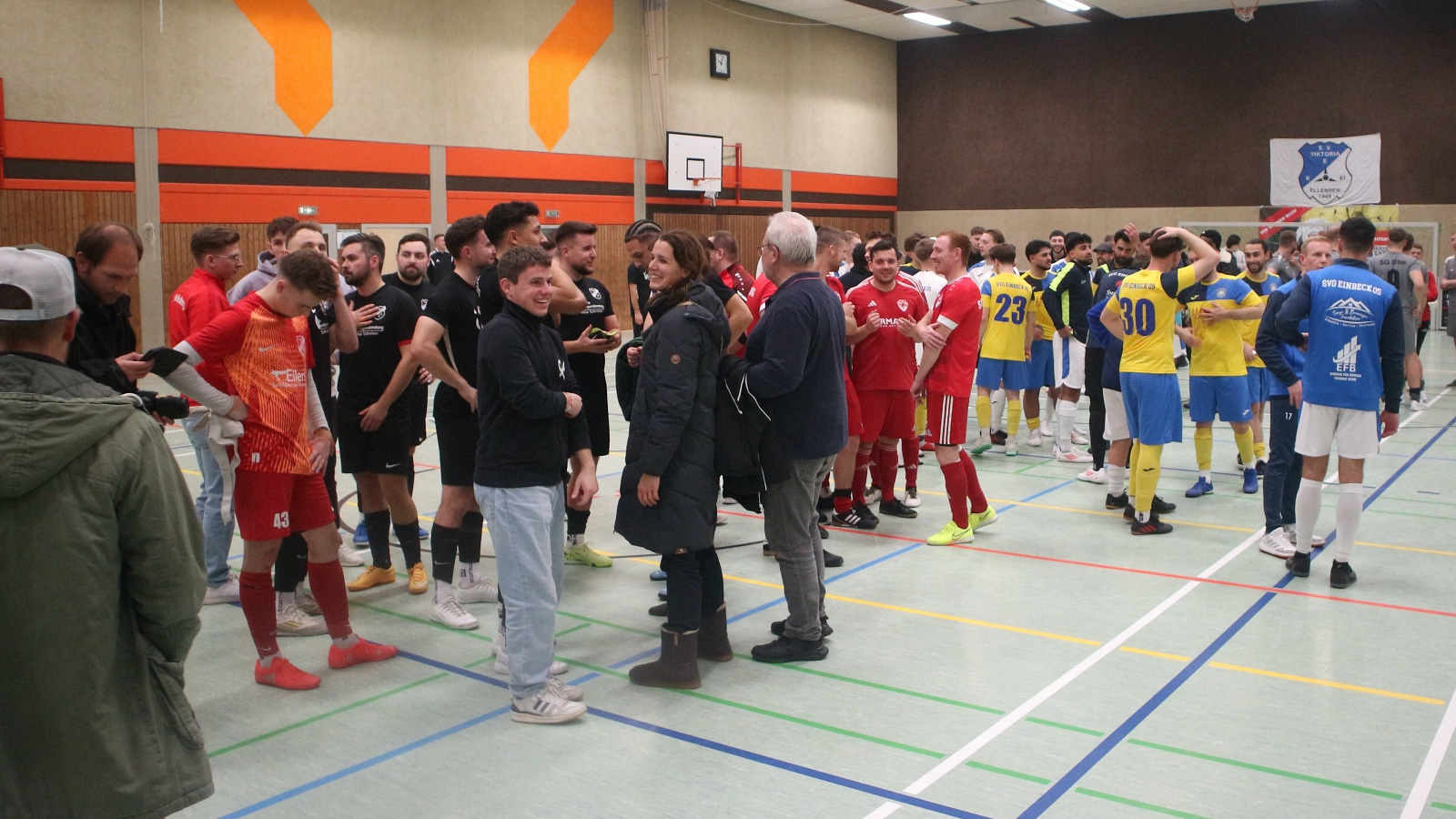 Schon weit vor dem ersten Anpfiff der Endrunde war die Halle bis auf den letzten Platz gefüllt. Die Zuschauer sorgten für eine Kulisse, die einem Finalabend würdig war. Besonders bei Begegnungen mit lokaler Beteiligung, etwa der SG Elfas oder der SG Solling, erreichte die Stimmung ihren Höhepunkt.