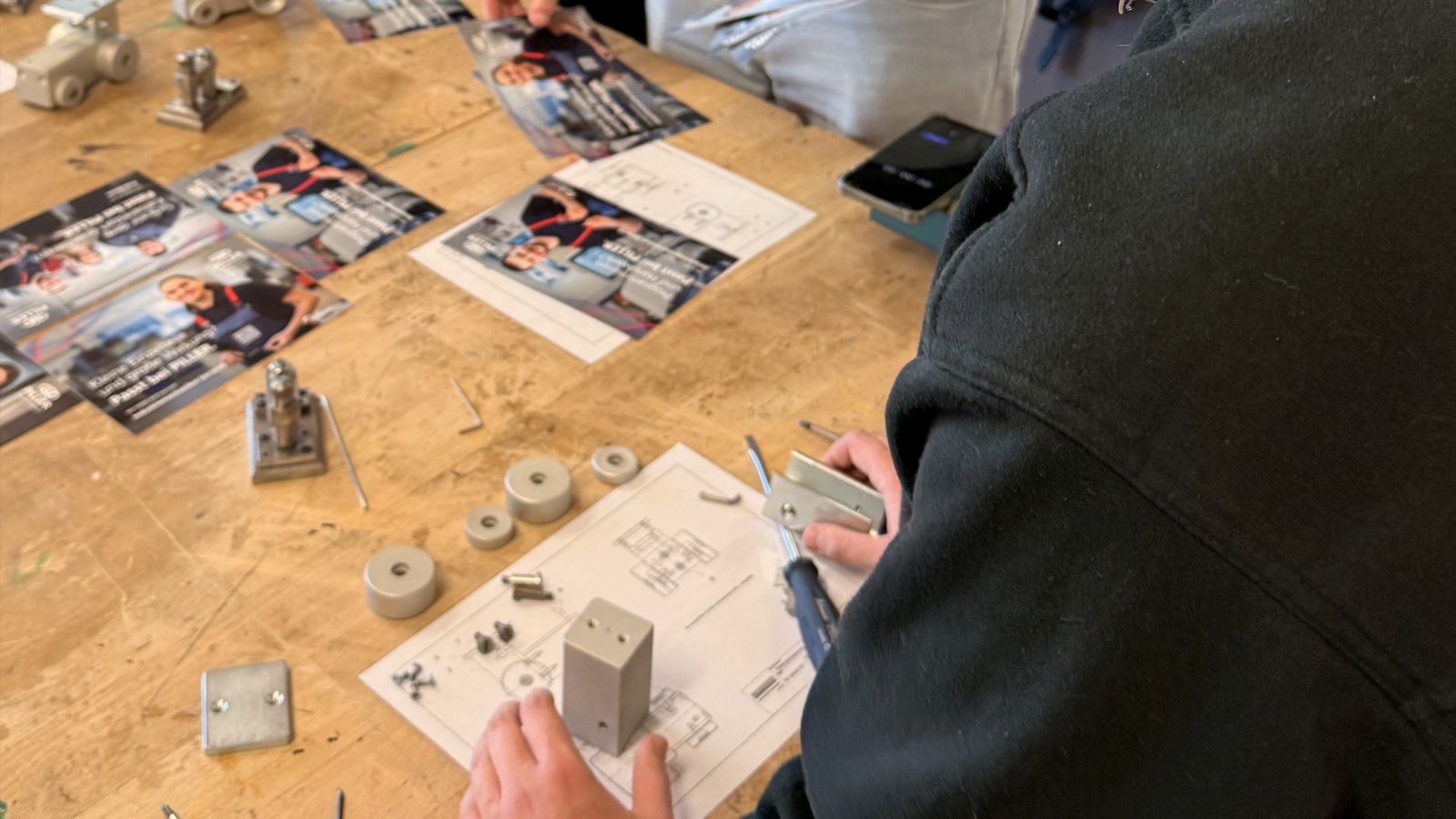 Im Mittelpunkt der Veranstaltung stand das praktische Erleben. In 90-minütigen Stationen konnten die Teilnehmenden handwerklich-technische Tätigkeiten eigenständig ausprobieren – vom Feilen über das Bohren bis hin zum Schrauben. Begleitet wurden sie dabei von Ausbilderinnen, Ausbildern und Auszubildenden regionaler Unternehmen, Institutionen und Fachschulen.