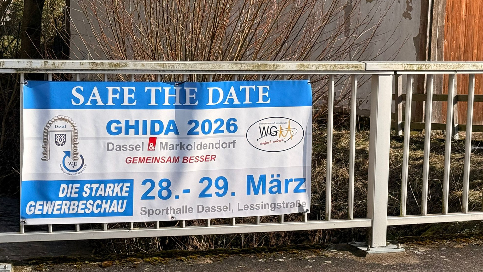Bereits jetzt weisen an verschiedenen Stellen in der Region große weiß-blaue Banner auf die bevorstehende GHIDA 2026 hin. Diese wurden kürzlich aufgestellt, um auf die Veranstaltung aufmerksam zu machen und die Menschen in der Region frühzeitig zu informieren.