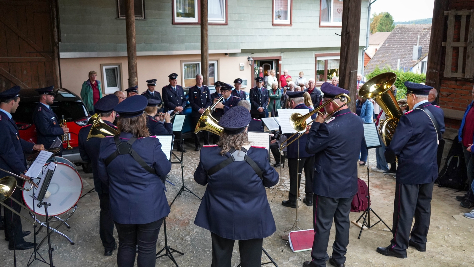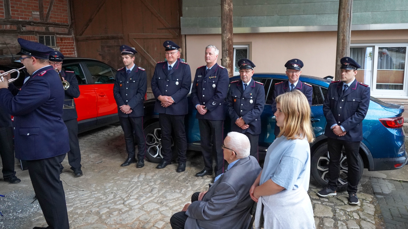Die Auszeichnung für seine sieben Jahrzehnte in der Feuerwehr hatte er bereits im April bei der Abschnittsversammlung des Brandabschnittes NordOst erhalten. Nun nutzte die Wehr den besonderen Geburtstag, um ihm mit einer Abordnung aktiver und ehemaliger Kameraden persönlich zu gratulieren. Für einen bewegenden musikalischen Höhepunkt sorgte der Feuerwehrmusikzug Dorste unter der Leitung von Alexander Wächter – eine große Freude für den Jubilar, der selbst ein leidenschaftlicher Fan der Feuerwehrmusik ist. Der Auftritt rührte ihn zu Tränen.