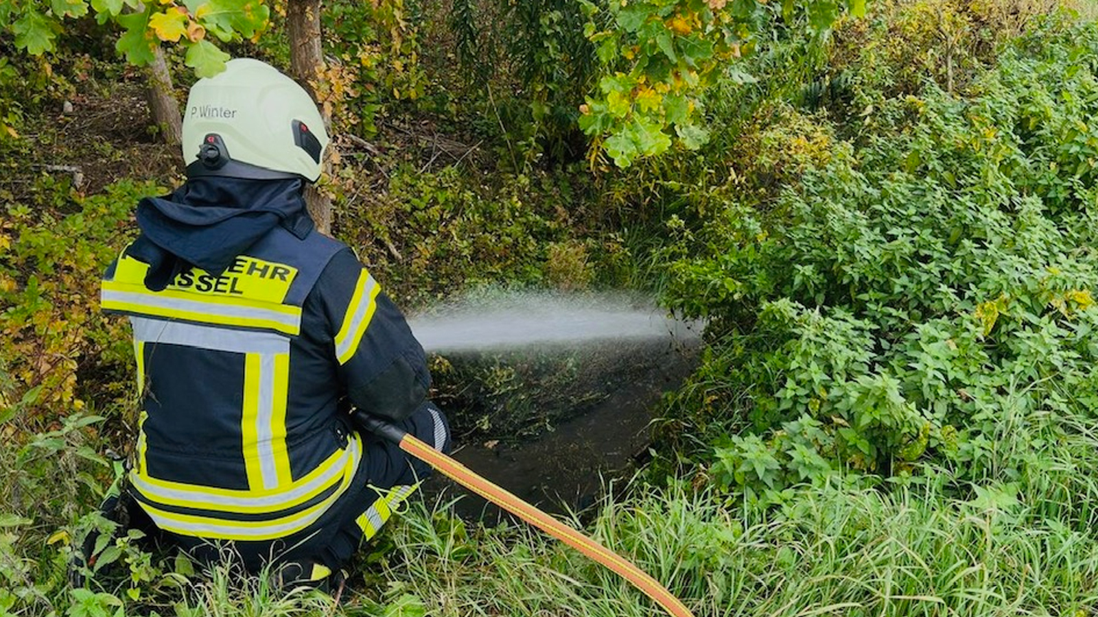 Dassel (red). Am Sonntag, 12. Oktober 2025, wurde die Feuerwehr Dassel um 11.10 Uhr mit dem Einsatzstichwort „Öl auf Gewässer“ in den Bereich der Ilme alarmiert. Vor Ort stellte sich jedoch schnell heraus, dass es sich nicht um eine Ölverschmutzung handelte, sondern um umgekipptes, stehendes Wasser.