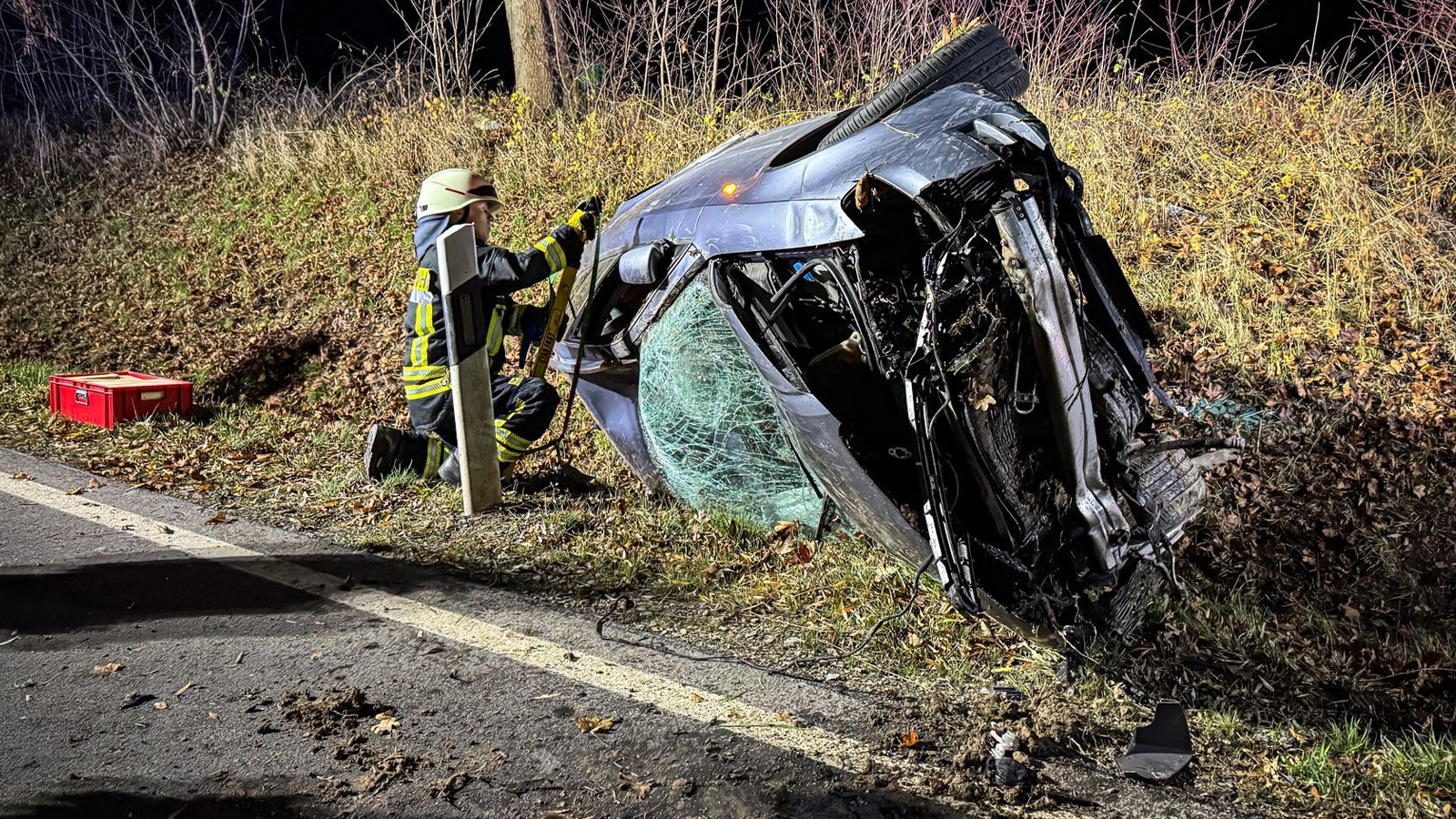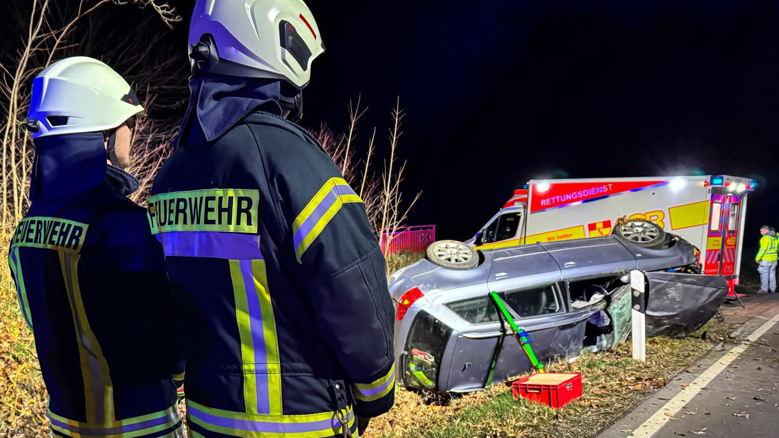 Gladebeck (red). Auf der Landesstraße 556 ereignete sich am 2. Dezember 2025 gegen 17 Uhr ein Unfall, bei dem sich ein 44-jähriger Moringer mit seinem Auto überschlug. Er war aus Richtung der Bundesstraße 446 kommend in Richtung Gladebeck unterwegs, als er nach rechts von der Fahrbahn abkam und im Straßengraben zum Liegen kam.