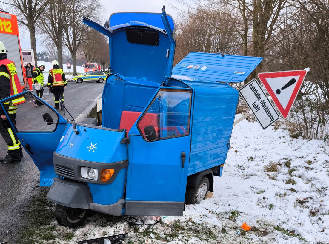 Einbeck (red). Auf der Landesstraße 580 bei Einbeck hat sich am Donnerstag, 8. Januar 2026, ein schwerer Verkehrsunfall ereignet. Ein 73 Jahre alter Mann wurde dabei schwer verletzt. Die Straße musste für rund eineinhalb Stunden voll gesperrt werden.