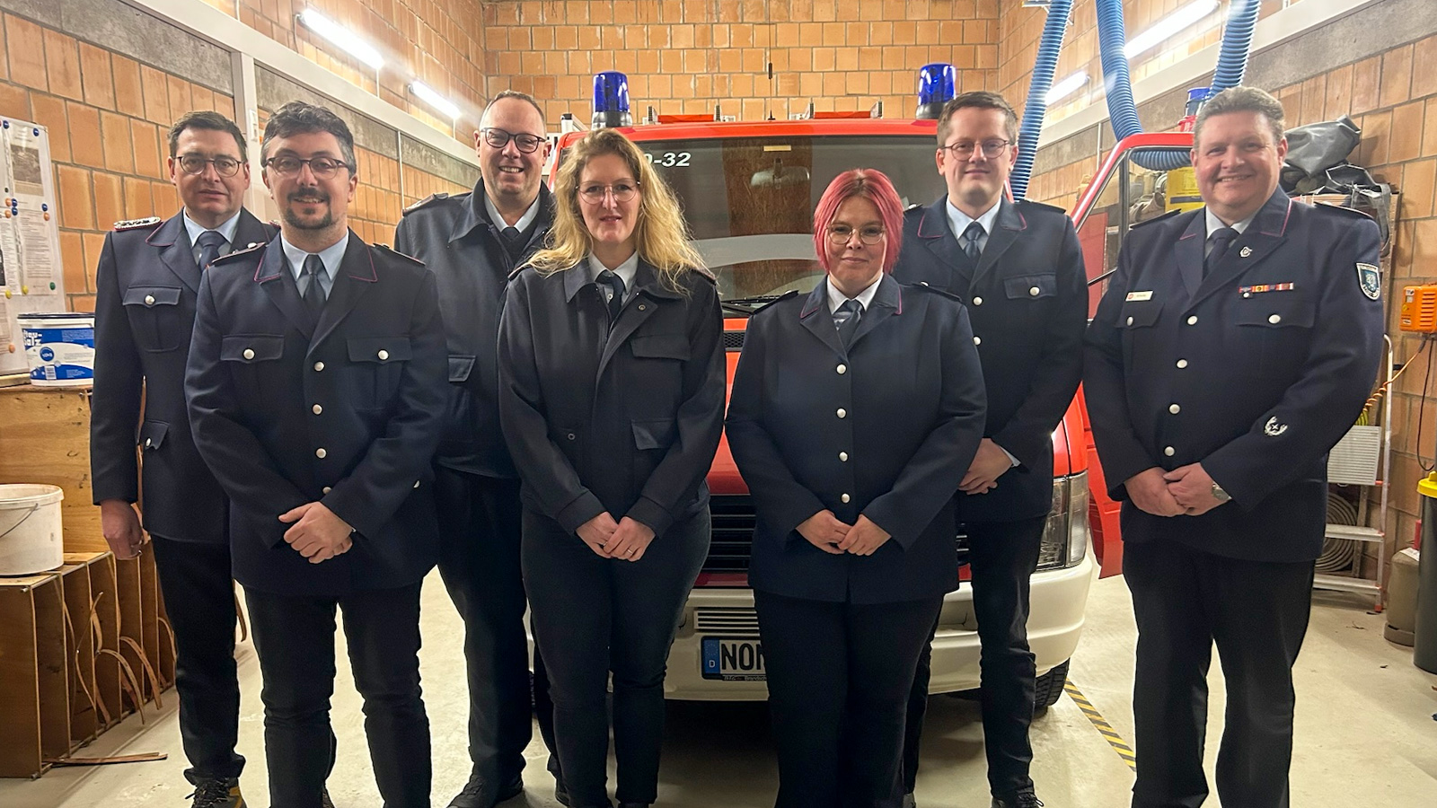 In seinem Tätigkeitsbericht stellte Ortsbrandmeister Steffen Reckmann die Einsätze des vergangenen Jahres sowie die durchgeführten Ausbildungsmaßnahmen vor. Besonders erfreulich sei die Ausbildung von fünf neuen Kameraden, die im vergangenen Jahr erfolgreich die QS 1 zur Einsatzfähigkeit ablegen konnten. Nicole Champignon, Ronja Simon, Sören Dornieden, Nico Sölter und Arndt Zacharias verstärken nun die Einsatzabteilung und wurden im Rahmen der Versammlung zu Feuerwehrfrau beziehungsweise Feuerwehrmann ernannt. Zudem wurde Dominik Langhage nachträglich für seine 25-jährige Mitgliedschaft geehrt.