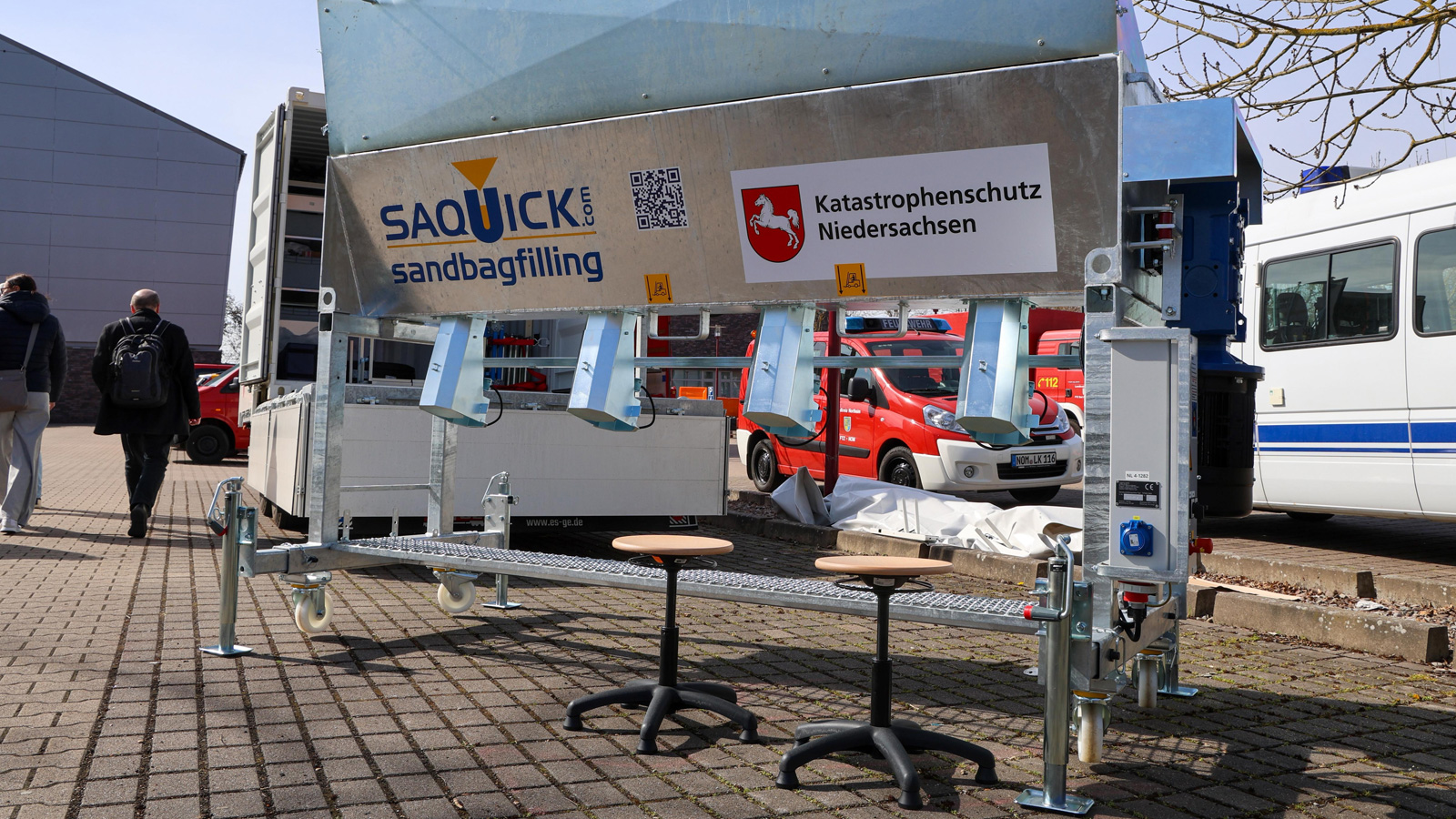 Auf der Freifläche konnten sich die Teilnehmer ein praxisnahes Bild machen: Die Fachgruppe Logistik und Technik, die Ortsfeuerwehr Wolperode mit ihrem neuen Tragkraftspritzenfahrzeug mit Wassertank, die Verpflegungskomponente und Rettungshundestaffel der Johanniter, das Einsatzstellen-Sicherungs-System des Technischen Hilfswerks, die Feuerwehr Einbeck mit der Drehleiter sowie der Warntrupp Bodenfelde gemeinsam mit dem Führungsdienst des Fachzuges stellten ihre Fähigkeiten vor und gaben Einblicke in den Einsatzalltag.
