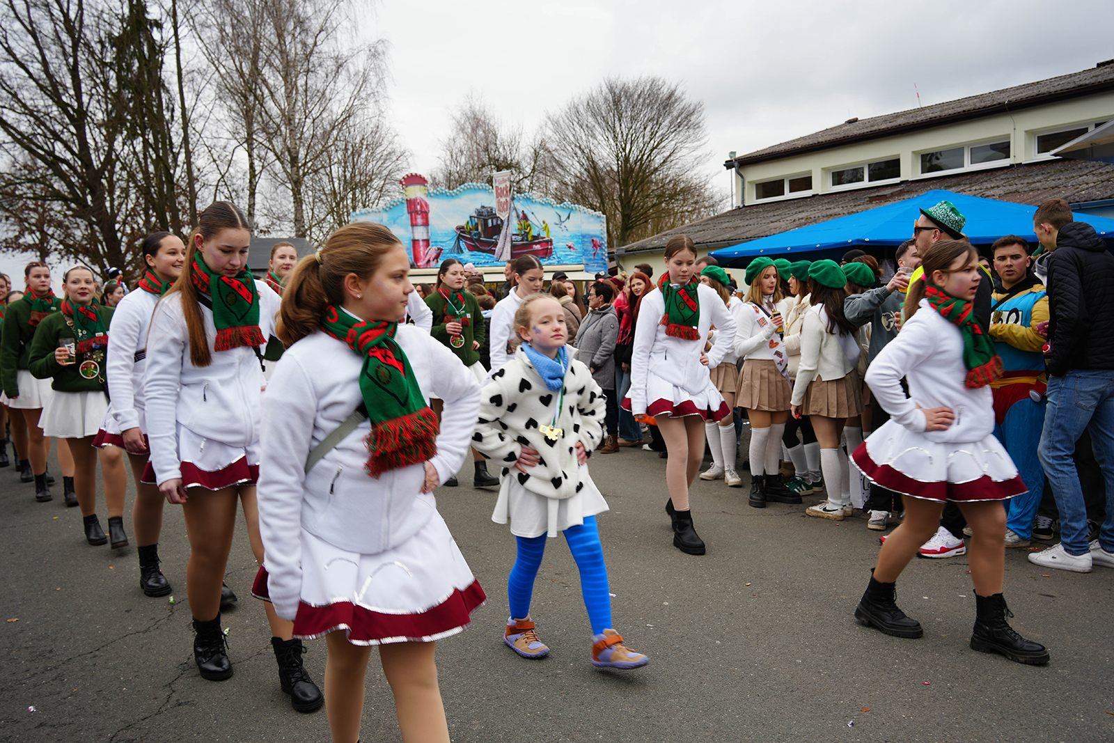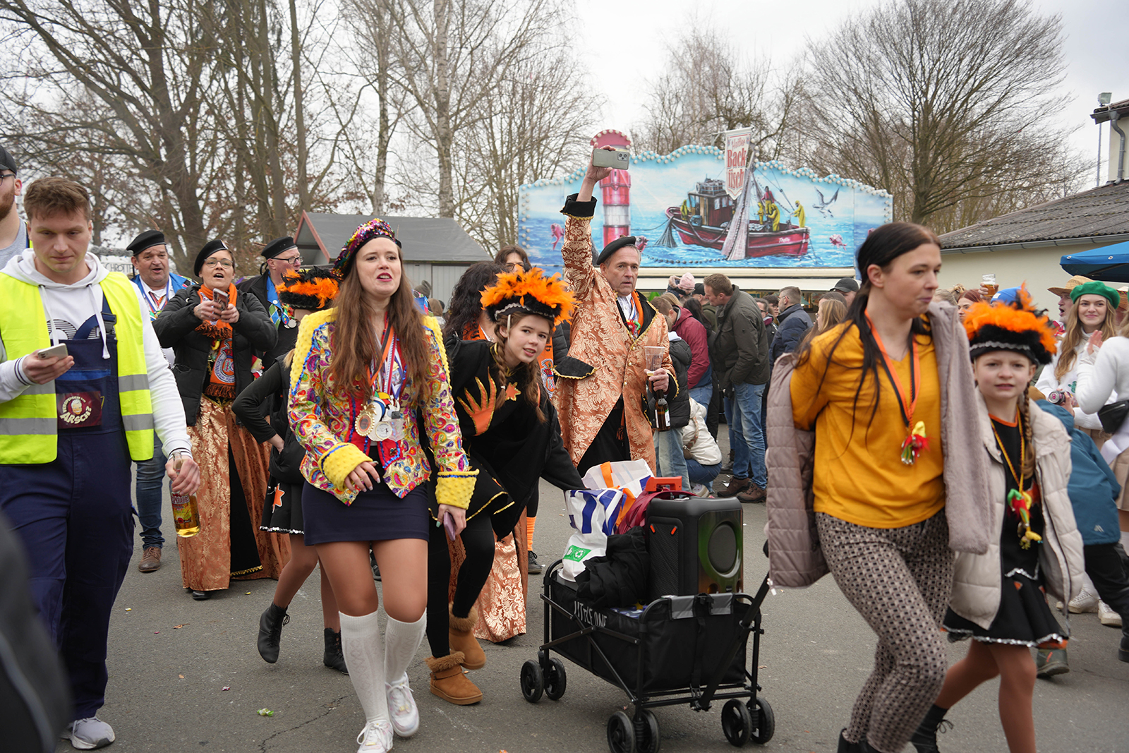 Diverse Spielmannszüge sorgten zudem für die passende Begleitung und einige Besucher konnten nicht widerstehen – sie tanzten einfach mit. Nach dem Umzug zog es viele ins Festzelt, wo ab 16 Uhr weitergefeiert wurde. Drumherum gab es außerdem erfrischende Getränke, leckeren Backfisch und andere Köstlichkeiten, während man den restlichen Karnevalstag in geselliger Runde ausklingen ließ.