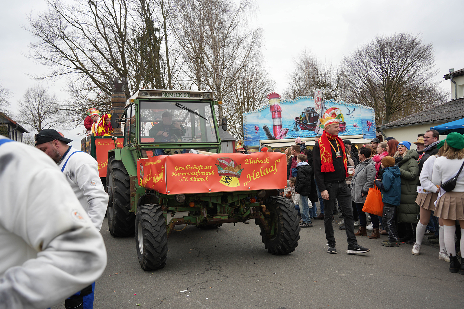 Von Engeln über Häftlinge bis hin zu traditionellen Karnevalsuniformen – die Vielfalt der Verkleidungen war groß. Auch originelle Kostüme wie Astronauten oder Spaghetti-Bolognese-Kostüme waren zu sehen. Während die Festwagen durch die Straßen wackelten, schallte Musik durch die Häuser und in einigen Wagen wurde derart gefeiert, dass sogar Rauch aufstieg. Besonders die Kinderaugen leuchteten, als Bonbons und andere Süßigkeiten in die Menge geworfen wurden. Begeistert sammelten sie diese auf, bis ihre Tüten prall gefüllt waren. Die Erwachsenen hingegen freuten sich über gefüllte Schnapsgläschen oder einen "Klopfer". Immer wieder hallte das fröhliche „Helau!“ durch die Straßen. Wer den Zug einmal gesehen hatte, war derart begeistert, dass er sich diesen an einer anderen Stelle im Dorf ein zweites oder drittes Mal anschaute.