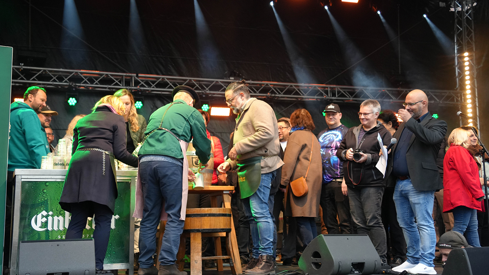 Jeder Ehrengast auf der Bühne wurde mit Kuscheltieren, Jutebeuteln und weiteren Goodies ausgestattet. Anschließend wurden diese in die Besuchermenge geworfen – sehr zur Freude der zahlreichen Kinder. Auch die Erwachsenen kamen nicht zu kurz: Nachdem der letzte Jutebeutel geworfen war, leitete man zum Fassanstich durch Dr. Michalek über und verteilte Gratisbecher an die Zuschauenden. Gesponsert wurden die Goodies von der „Einbecker Wohnungsbau“, das Bier kam vom „Einbecker Brauhaus“.