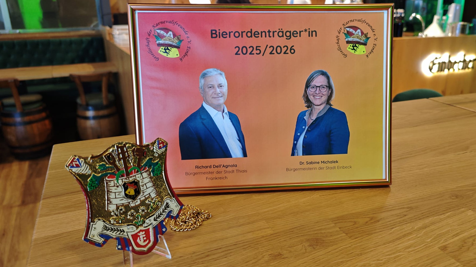 Die feierliche Ordensverleihung findet am 15. Januar 2026 statt. In diesem Jahr geht die Auszeichnung gleich an zwei Persönlichkeiten. Einer der Geehrten ist Richard Dell’Agnola, Bürgermeister der französischen Partnerstadt Thiais. Gemeinsam mit einer Delegation wird er an diesem Tag nach Einbeck kommen, um den Orden persönlich entgegenzunehmen. „Wir freuen uns jedes Mal, wenn Thiais hier zu Gast ist – und wir waren natürlich auch selbst schon dort zum Karneval“, so Stömer.