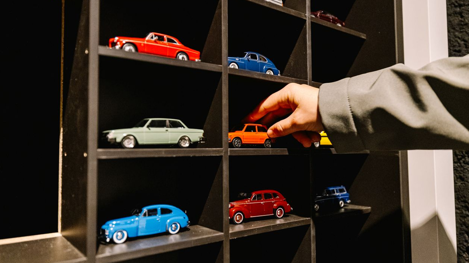 Von der Einführung in die Modellfahrzeugvielfalt über den Vergleich verschiedener Maßstäbe – am Beispiel des legendären VW Käfer – bis hin zu einer urbanen Kulisse mit Dioramen und einem Paternoster voller Modelle unterschiedlichster Art führt der Rundgang durch abwechslungsreich gestaltete Erlebnisräume. Der Abschlussraum „Mein Modell“ präsentiert acht wechselnde Lieblingsstücke mit ihren ganz persönlichen Geschichten.