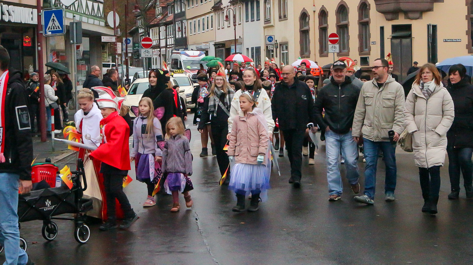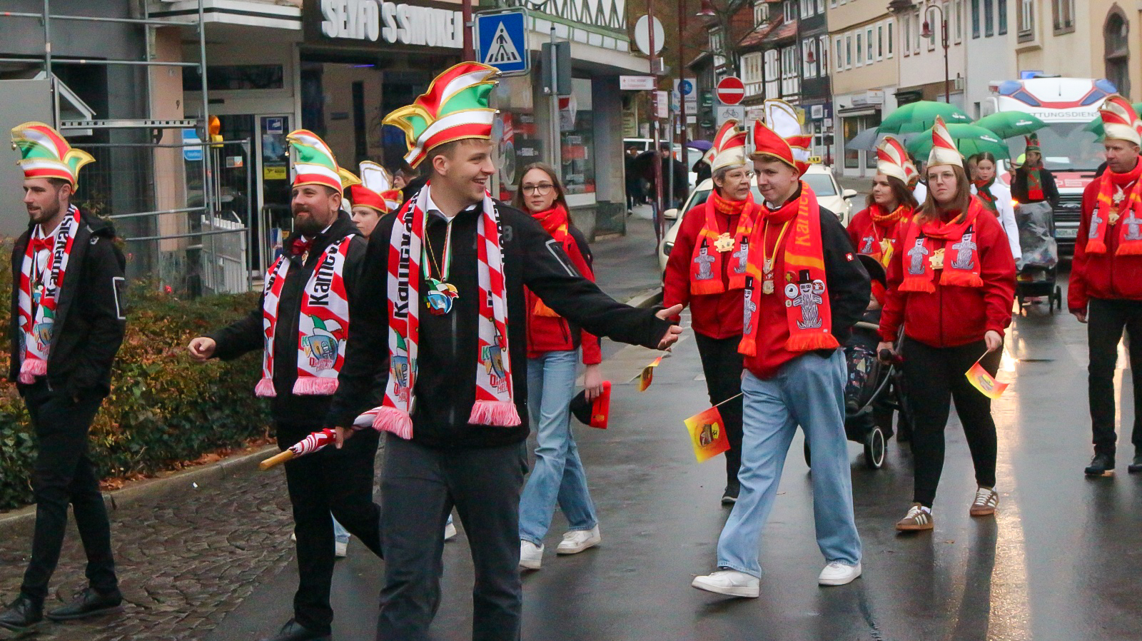 Einbeck (red). Mit einem farbenfrohen Umzug hat die Gesellschaft der Karnevalsfreunde Einbeck e. V. (GdKE) am Samstag offiziell den Startschuss für die fünfte Jahreszeit gegeben. Gemeinsam mit befreundeten und benachbarten Vereinen setzte sich der närrische Tross an der Mendelsohn-Musikschule in Bewegung, begleitet vom Spielmannszug Amelsen. Angeführt wurden die Jecken vom Prinzenpaar Lisa I. und Kai I. sowie dem Kinderprinzenpaar Liah I. und Anton I.