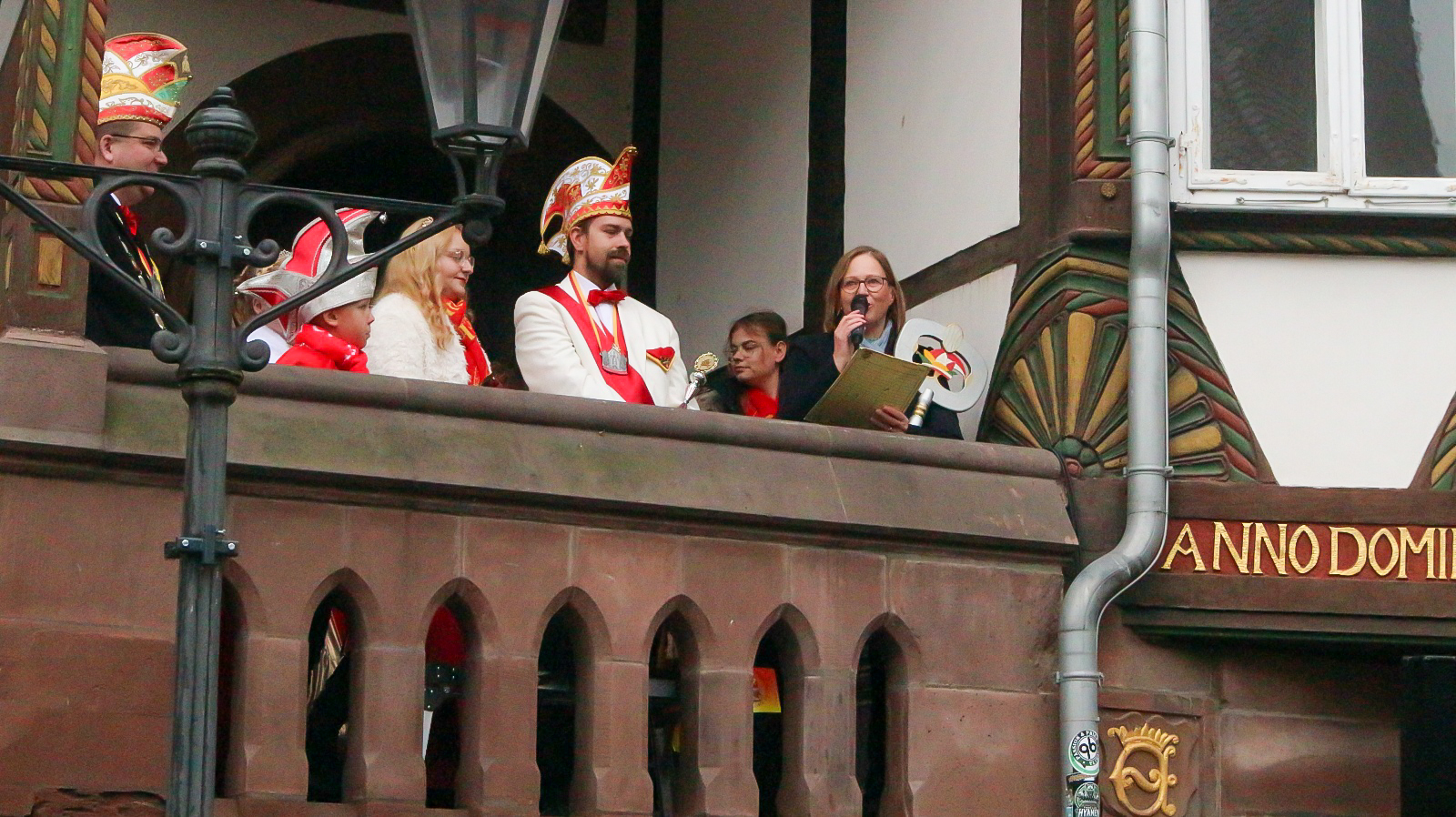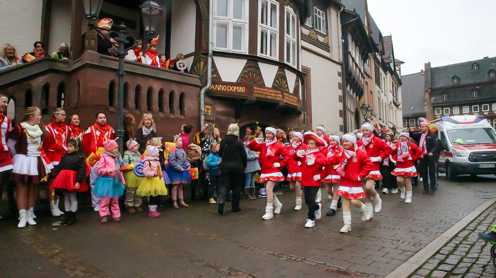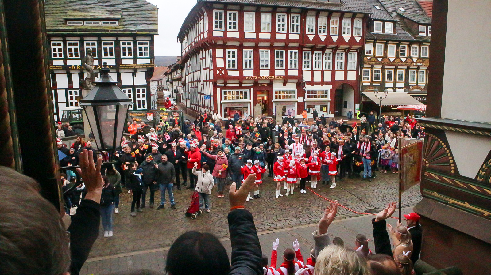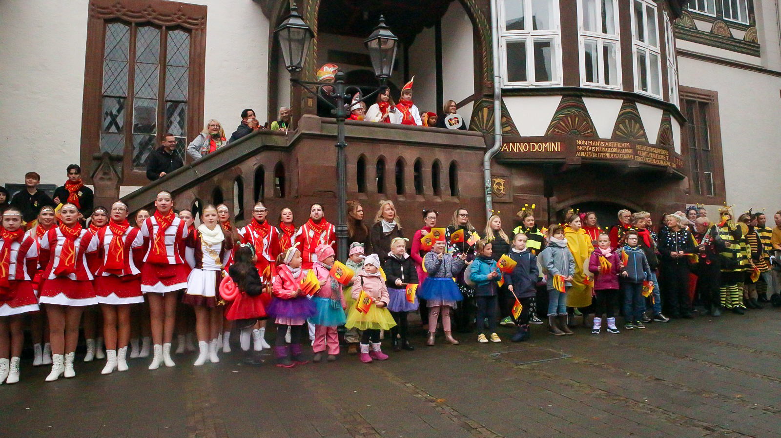 Traditionell führte der Weg die Karnevalisten schließlich zum Alten Rathaus. Dort forderten sie lautstark den begehrten Rathausschlüssel ein. Angesichts der farbenfrohen Übermacht blieb Bürgermeisterin Dr. Sabine Michalek nichts anderes übrig, als den Schlüssel feierlich zu überreichen – und damit den Einbecker Narren die Herrschaft über das Rathaus für die kommenden vier Monate zu überlassen.