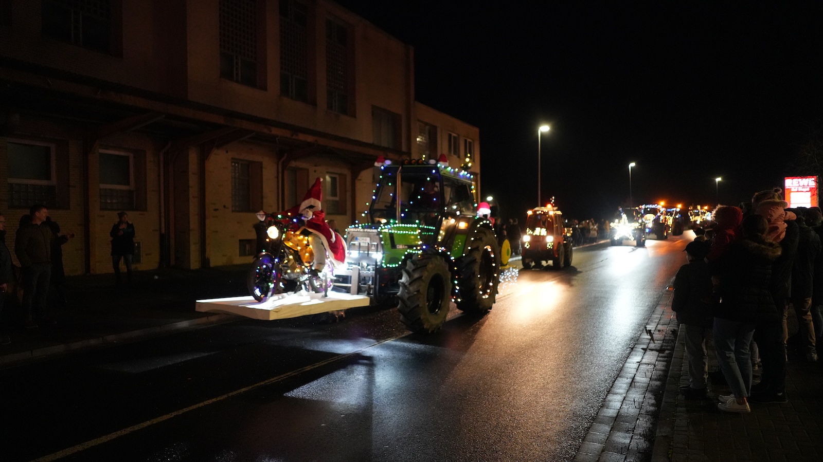 Dassel/Einbeck (lbr). Mit festlich geschmückten Fahrzeugen und leuchtenden Augen am Straßenrand ist am gestrigen Samstag um 17 Uhr der erste Teil der großen Lichterfahrt gestartet. Rund 130 Fahrzeuge – überwiegend Trecker, aber auch einige Lkw sowie Oldtimer-Lkw und Busse aus dem PS.Speicher in Einbeck – rollten durch zahlreiche Ortschaften und begeisterten tausende Zuschauer entlang der Strecke.