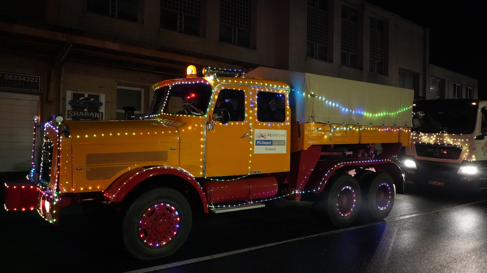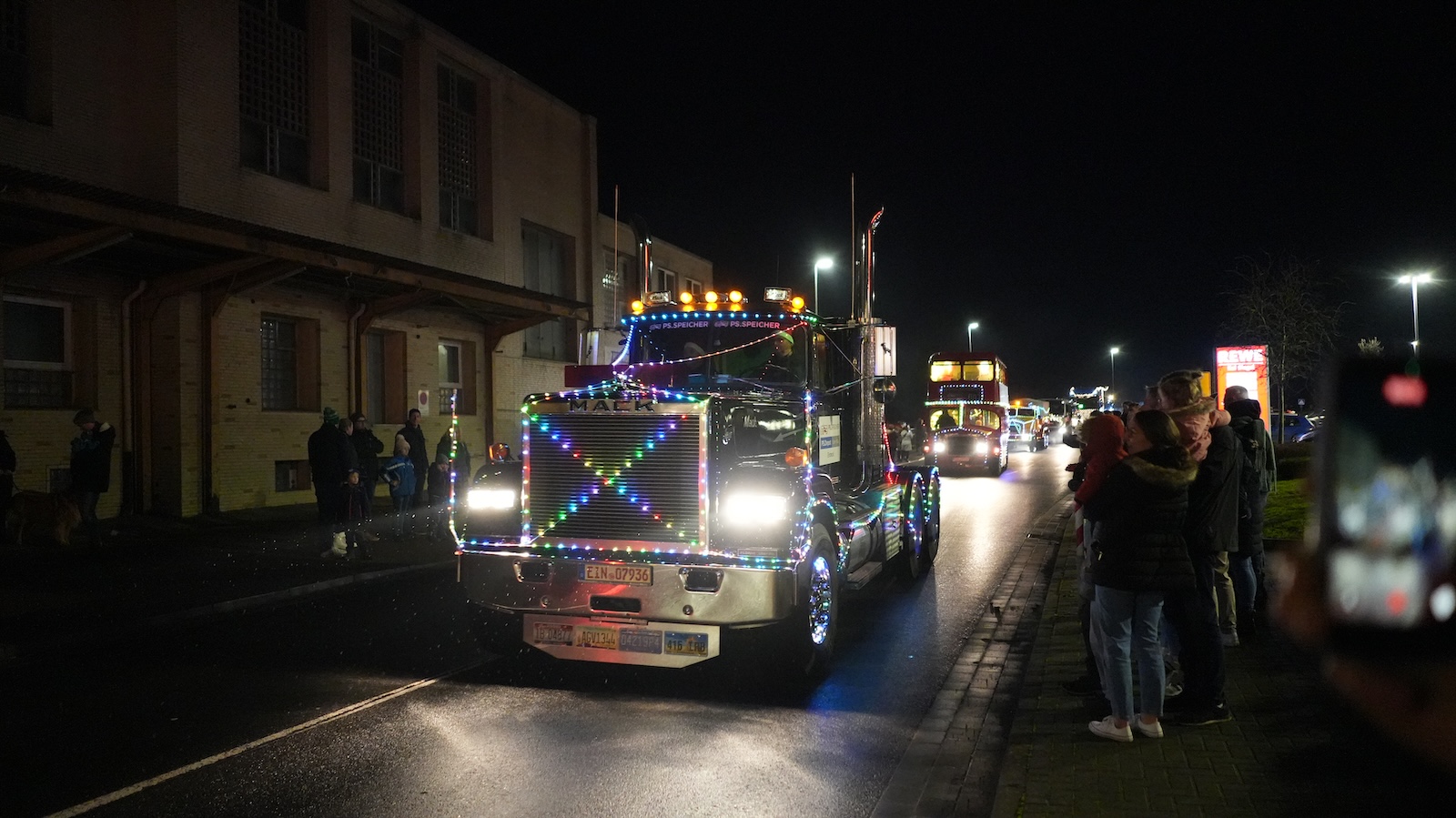 Ein besonderes Augenmerk lag erneut auf dem Spendenauto, das traditionell den Abschluss des Konvois bildet und für den guten Zweck unterwegs ist. Viele Besucher nutzten die Gelegenheit, die festlich beleuchteten Fahrzeuge aus nächster Nähe zu erleben und die vorweihnachtliche Stimmung zu genießen.