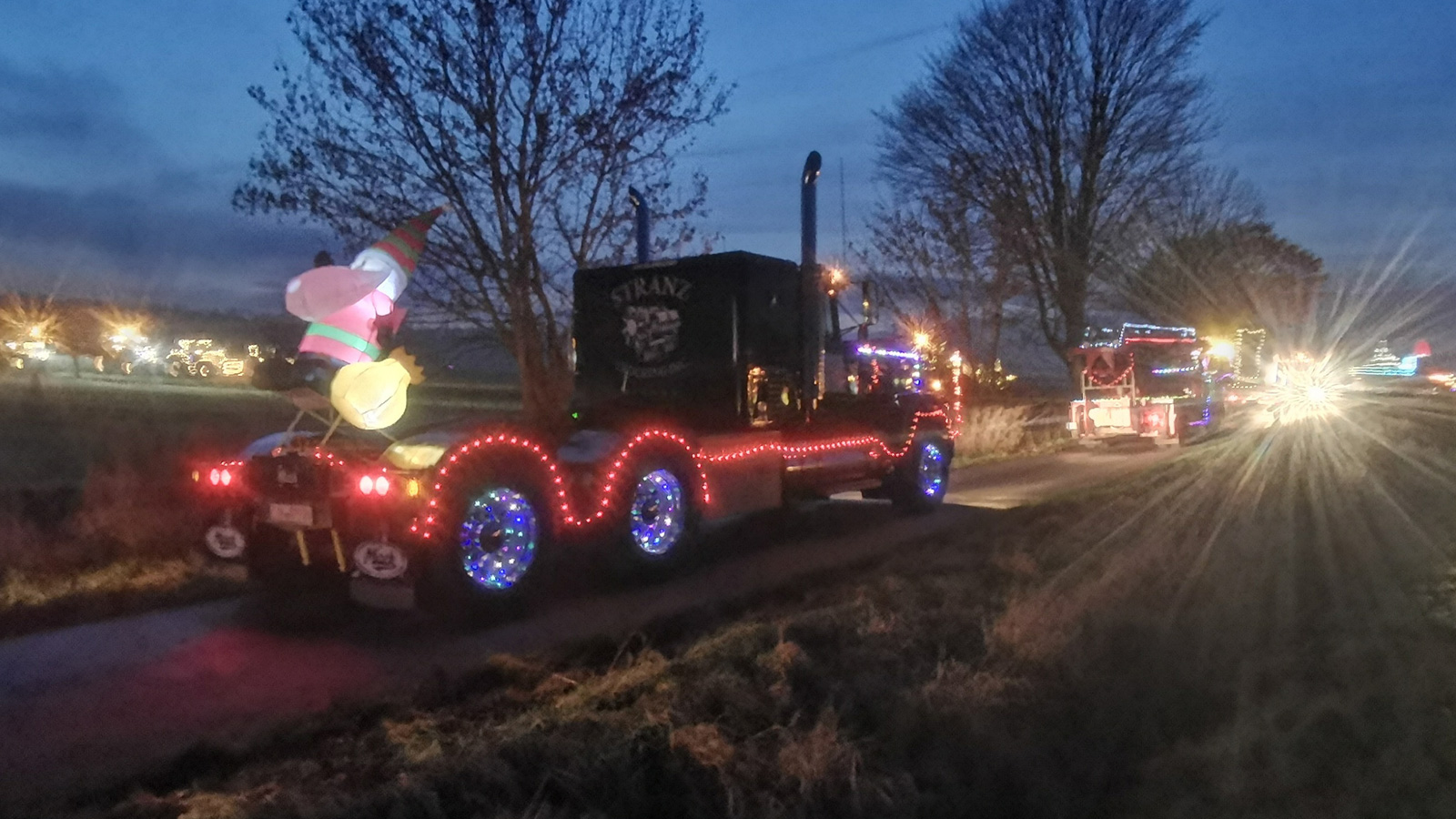 Der Start des zweiten Fahrtages erfolgte zwischen Dassensen und Holtensen, wo sich die festlich geschmückten Fahrzeuge in Zweierreihen aufstellten, bevor sich der leuchtende Zug durch Einbeck und die umliegenden Ortschaften in Bewegung setzte.