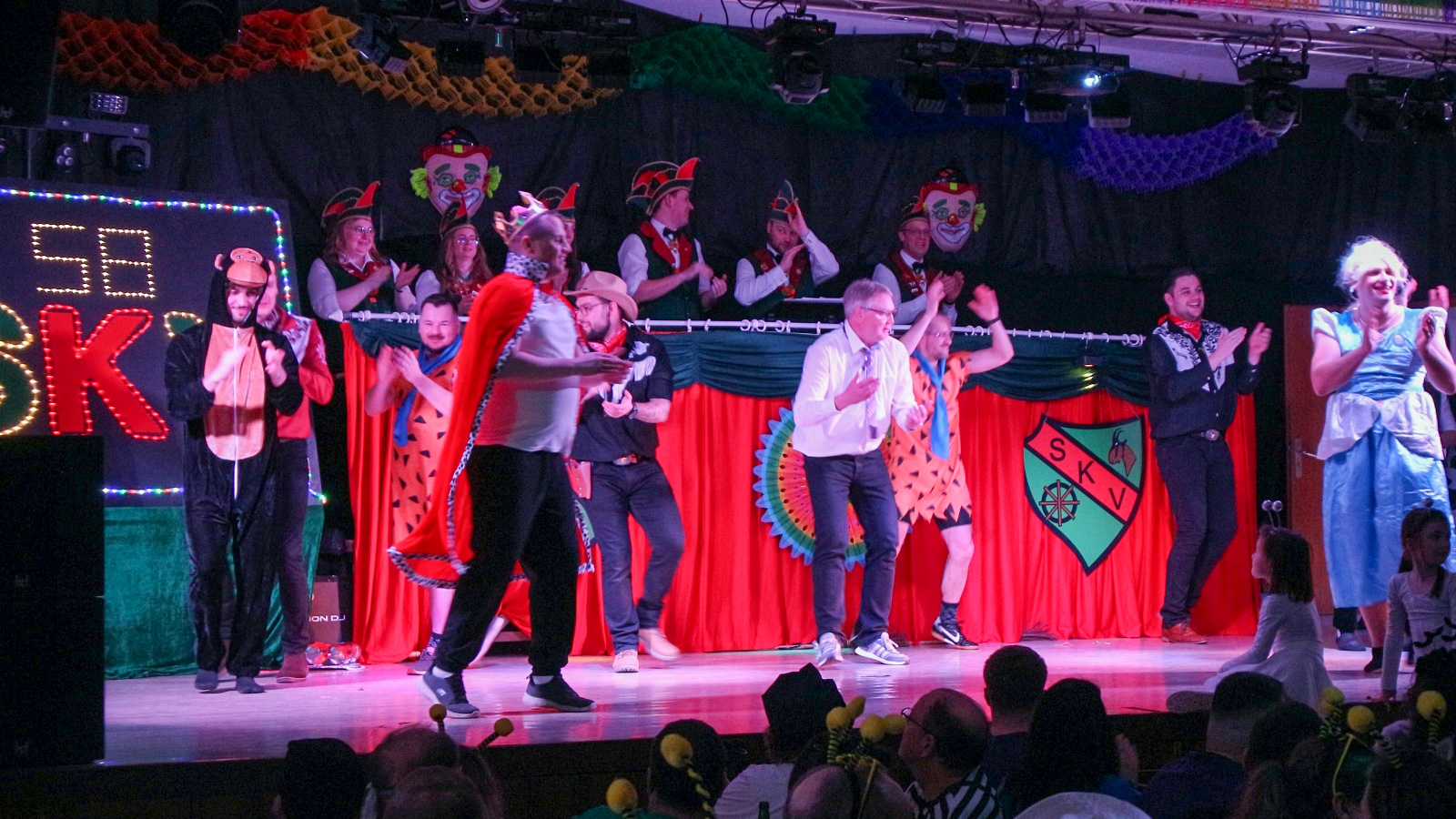 Das Herzstück des Abends bildeten die Aktiven. Von den kleinsten „Tanzmäusen“ bis hin zu den erfahrenen Akteuren der Showgruppen – insgesamt standen Karnevalistinnen und Karnevalisten im Alter von 6 bis 60 Jahren auf der Bühne. Dass hinter den bunten Kostümen und den lachenden Gesichtern monatelange harte Arbeit und sportliche Höchstleistungen stecken, hob die Moderation besonders hervor: „Jeder Einzelne verdient unseren Respekt und herzlichen Applaus für diese Leistung.“