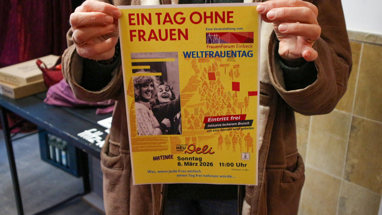 Am 8. März 2026 um 11 Uhr wird im NEU-Deli der Dokumentarfilm „Ein Tag ohne Frauen“ gezeigt. Der Film erzählt vom historischen Frauenstreik in Island 1975, als 90 Prozent der Frauen ihre Arbeit niederlegten und damit ein ganzes Land zum Stillstand brachten. Mit persönlichen Stimmen und kreativen Animationen verdeutlicht der Film die gesellschaftliche Bedeutung weiblicher Arbeit – damals wie heute.