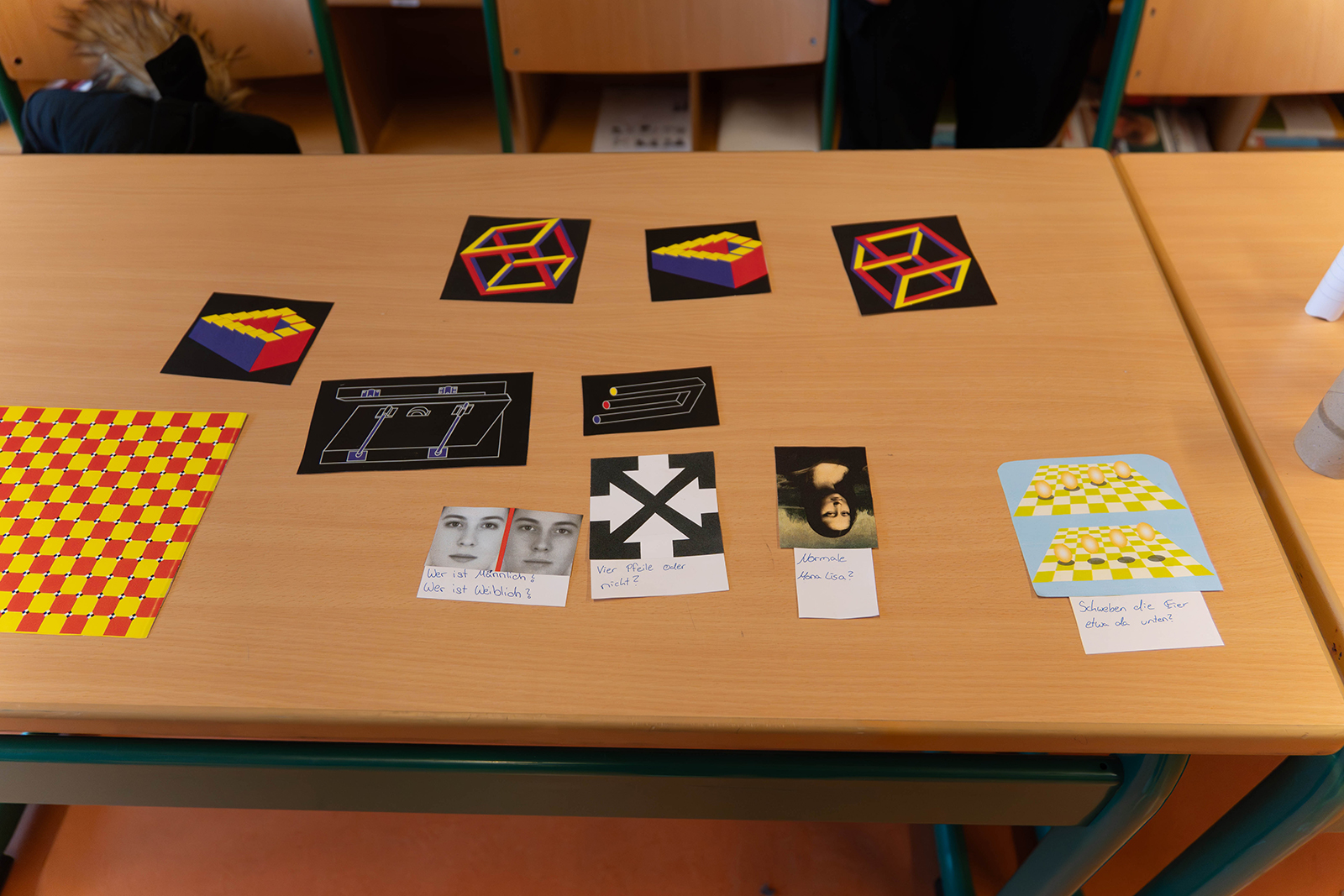 Ein weiterer Raum war der Technik gewidmet. Hier konnten Lego-Roboter in Aktion erlebt werden. Schülerinnen und Schüler der höheren Jahrgänge sowie Lehrer erklärten, wie die Modelle aufgebaut sind und welche Befehle sie ausführen. An einzelnen Tischen bestand die Möglichkeit, selbst einfache Abläufe zu testen oder bei einer spielerischen Aufgabe – etwa einem technikgestützten Fußballspiel – die Funktionsweise kennenzulernen. Ergänzend wurden Stationen angeboten, an denen die eigenen Sinne geprüft wurden, um den Bezug zwischen Technik und Wahrnehmung greifbar zu machen.