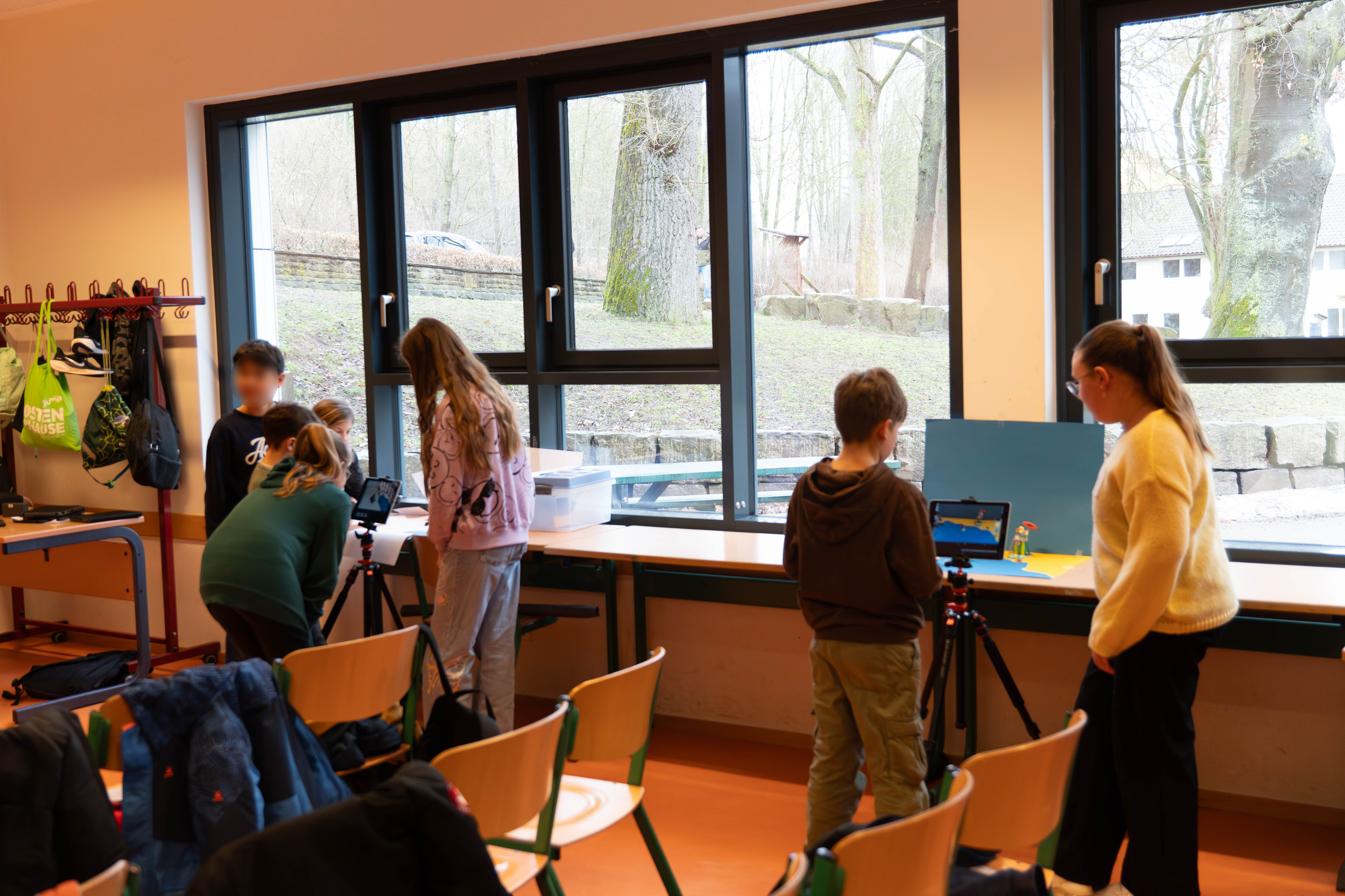 Parallel dazu entstand in einem weiteren Raum ein kleines Medienlabor. Mit Tablets sowie Figuren und Bausteinen wurden kurze Filmsequenzen produziert. Schülerinnen und Schüler erklärten, wie Einstellungen geplant und Szenen aufgebaut werden. Zudem hatten die Viertklässler Gelegenheit, erste Interviews zu führen und sich in der Rolle von Fragestellenden auszuprobieren. Dabei ging es nicht nur um Technik, sondern auch um präzises Zuhören und verständliches Formulieren.