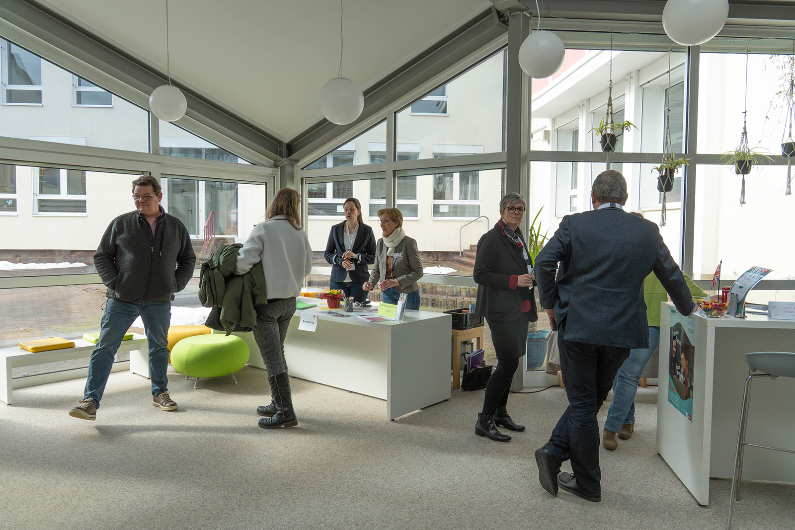 Während die Kinder aktiv unterwegs waren, standen im Palmengarten die Schulleitung sowie Vertreterinnen und Vertreter des Kollegiums, des Fördervereins und des Lernfonds für Gespräche bereit. Dort wurden auch die pädagogischen Konzepte, die digitale Ausstattung und das Beratungsangebot erläutert.
