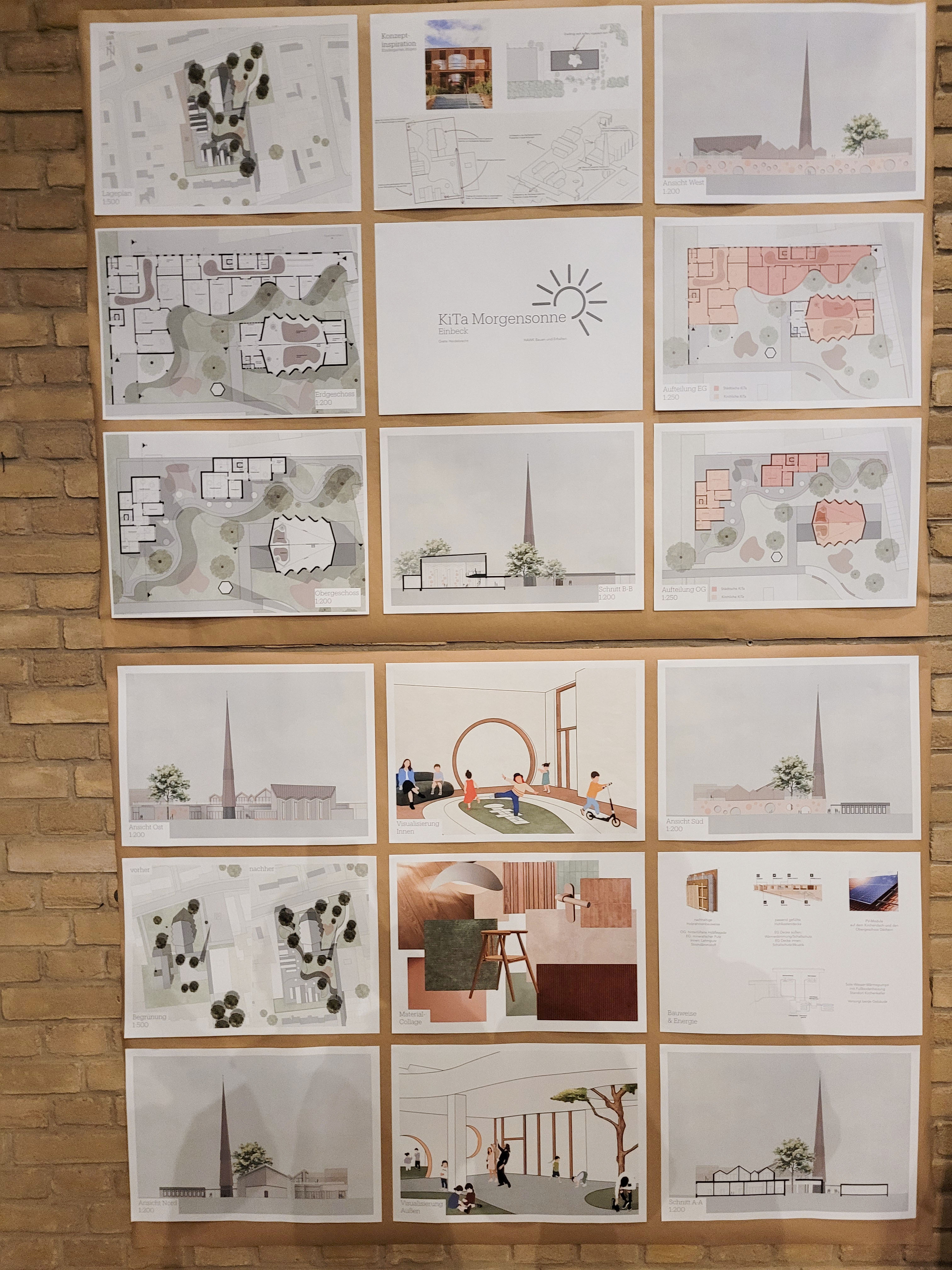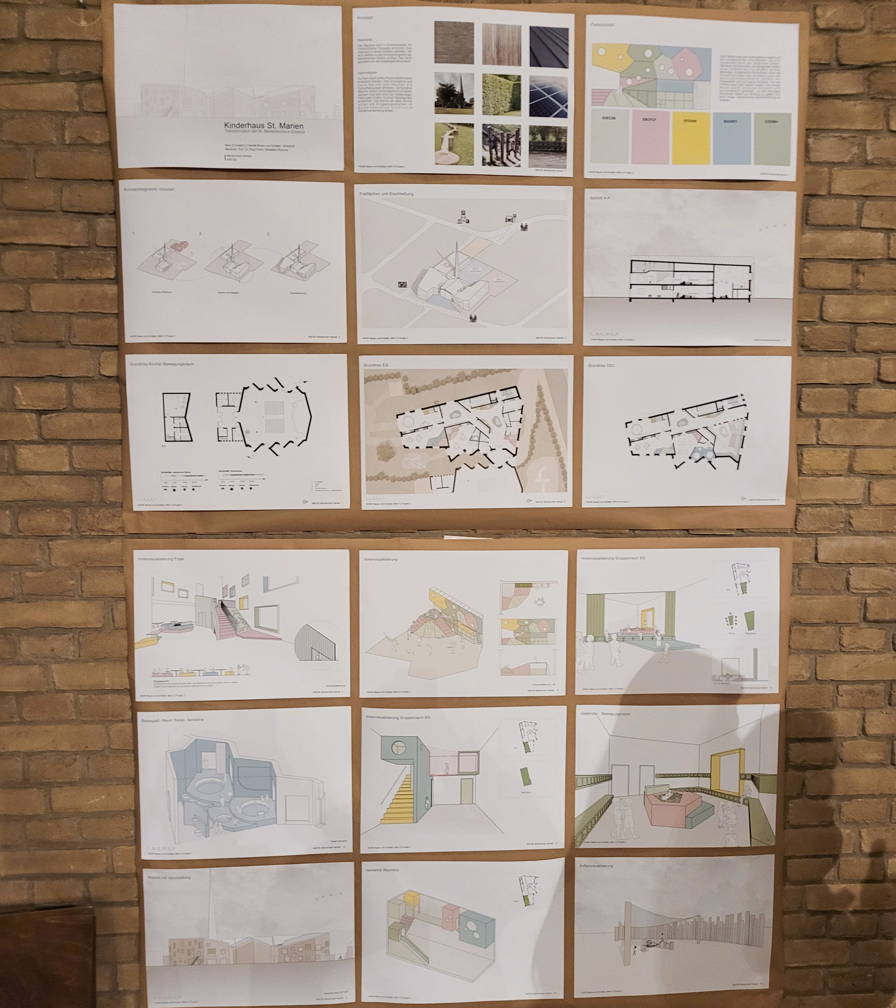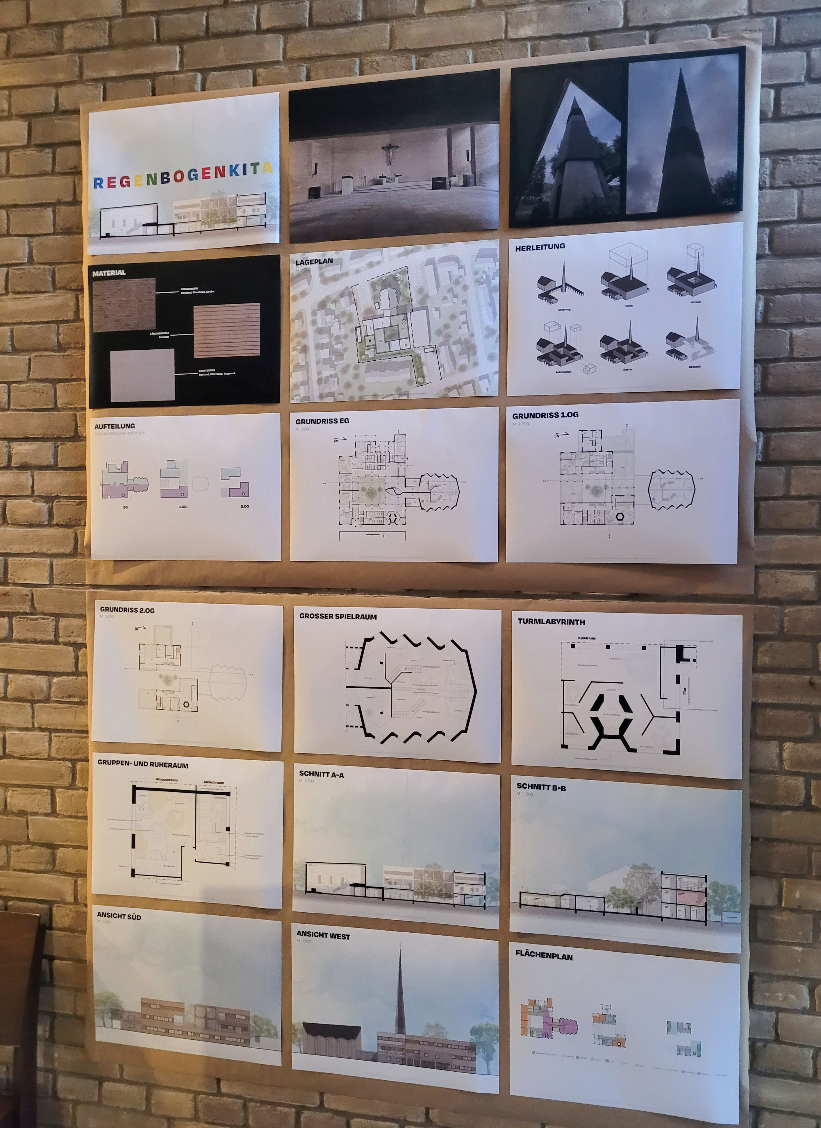 Ausgangspunkt für die studentischen Arbeiten war unter anderem die Frage, ob sich auf dem Gelände zwei Kindergärten – ein staatlicher und ein kirchlicher – realisieren ließen. Diese mögliche Nutzung bildete eine zentrale Grundlage mehrerer Entwürfe und stellte die Verbindung zwischen Kirchenareal und künftiger Bildungsinfrastruktur her.