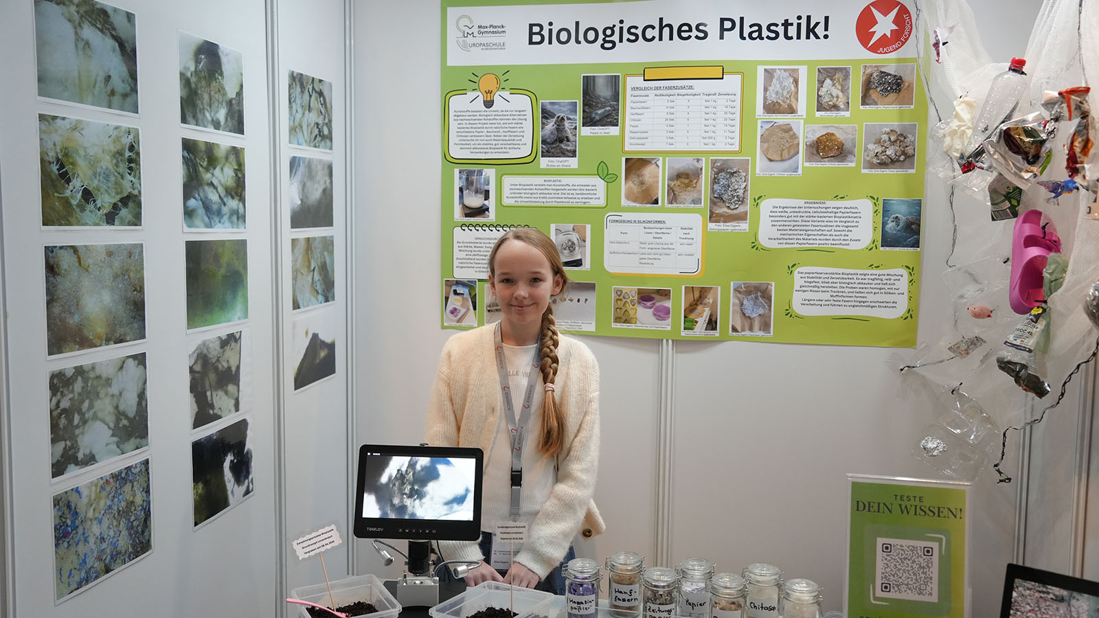 Neben dem Siegerteam war mit Emne Aloui eine weitere Teilnehmerin aus der Region vertreten – ebenfalls vom Corvinianum. Ihr Projekt beschäftigte sich mit der Massenänderung von Gummibärchen in unterschiedlichen Flüssigkeiten. Dabei untersuchte sie, wie sich die Süßwaren in Medien wie Säften, Milch oder Coca-Cola mit verschiedenen pH-Werten verändern. „Ich will Kindern veranschaulichen, was im Magen passiert, wenn man ein Völlegefühl nach dem Verzehr von Süßigkeiten und Getränken hat“, gab die Nachwuchs-Forscherin ihre Intention an.