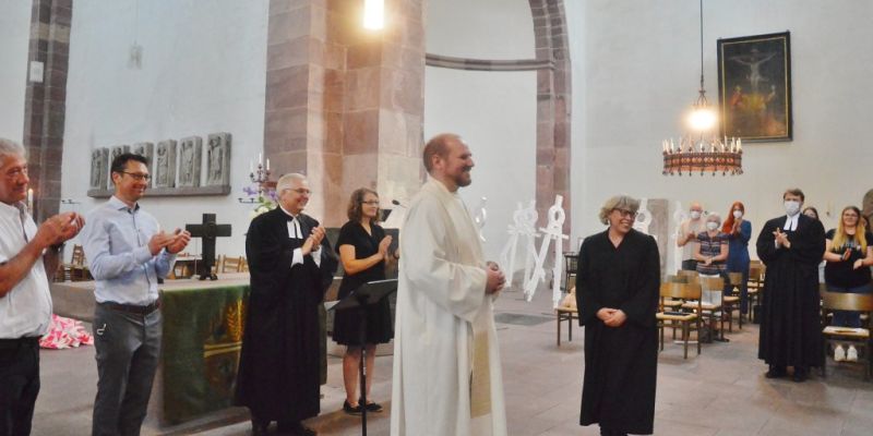Gerhard Steffen leitete schnell von sich zu den beiden Hauptpersonen des Tages über, er habe hier viele Pastoren und wenige Pastorinnen erlebt und gerne mit ihnen zusammengearbeitet, jetzt freut er sich auf Jan Höffker und Heike Nieschalk und insbesondere darüber, dass auch wieder eine Frau im Team ist. Auch Jan von Lingen stellte die beiden noch einmal vor, auch wenn das eigentliche kaum nötig ist. Immerhin habe Jan Höffker schon in den vergangenen Jahren gezeigt, dass er gerne Neues ausprobiert, hat in der Zeit des Abstands auf digitale Formate gesetzt, aber ebenso auch Jugendliche für Kirche begeistert.