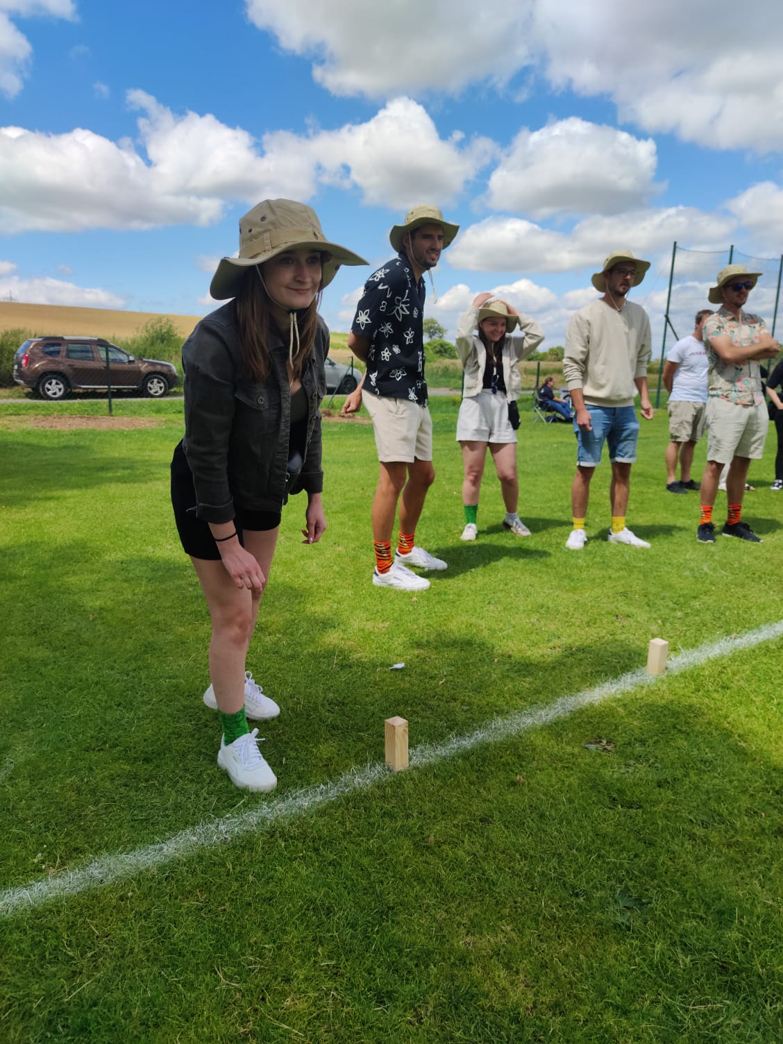 Hollenstedt (hakö). Geschicklichkeit war gefragt beim Wikinger Schach des Junggesellenvereins Hollenstedt. 19 Teams beteiligten sich am Turnier auf dem Rasen des TSV, zeigten bei bester Stimmung feinmotorische Bewegungen der Hände, Füße oder des Kopfs. Eine gelungene Premiere am Sporthaus, ein Event, das man auch im kommenden Jahr gern wieder anbieten möchte, betonten die Organisatoren, zur Freude auch von Ortsbürgermeister Christian Frohme. Beim Wikinger Schach geht es um Wurfgenauigkeit und Zielsicherheit. Ziel des Spiels ist es, alle fünf gegnerischen Spielfiguren umzuwerfen. Finalrunde - 1. Die Bölle-Wikinger, 2. Krustenbraten Connection, 3. Schachklub Bölle 1980, 4. DRK Hollenstedt. Das nächste Highlight des TSV Hollenstedt: Die Sportwoche vom 22. bis 25. August.