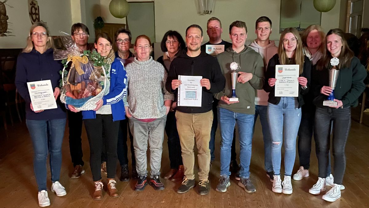 Nach dem Gedenken an die verstorbenen Vereinsmitglieder und der Genehmigung des Protokolls der Vorjahresversammlung folgte ein umfangreicher Ehrungsteil. Für 25 Jahre Mitgliedschaft und damit verbunden die silberne Ehrennadel wurden Jana Dumnitz, Leon Falke, Robin Falke, Moritz Gillmann, Denise Herbst, Heiko Herbst, Marvin Herbst, Lea Ohlendorf, Jan-Luca Werner und Katja Werner ausgezeichnet. Die goldene Ehrennadel für 40 Jahre erhielten Christian Dehne, Gudrun Gillmann, Nicole Laue, Marina Seckler und Marco Weißmann. Ein Ehrengeschenk für 50-jährige Vereinszugehörigkeit ging an Steffen Böcker, Jens Falke, Marina Falke, Stefan Greve, Wiltrud Herbst, Holger Joppe, Andreas Nolte, Wolfgang Nolte, Silvia Rieseberg und Stefanie Schmidt.