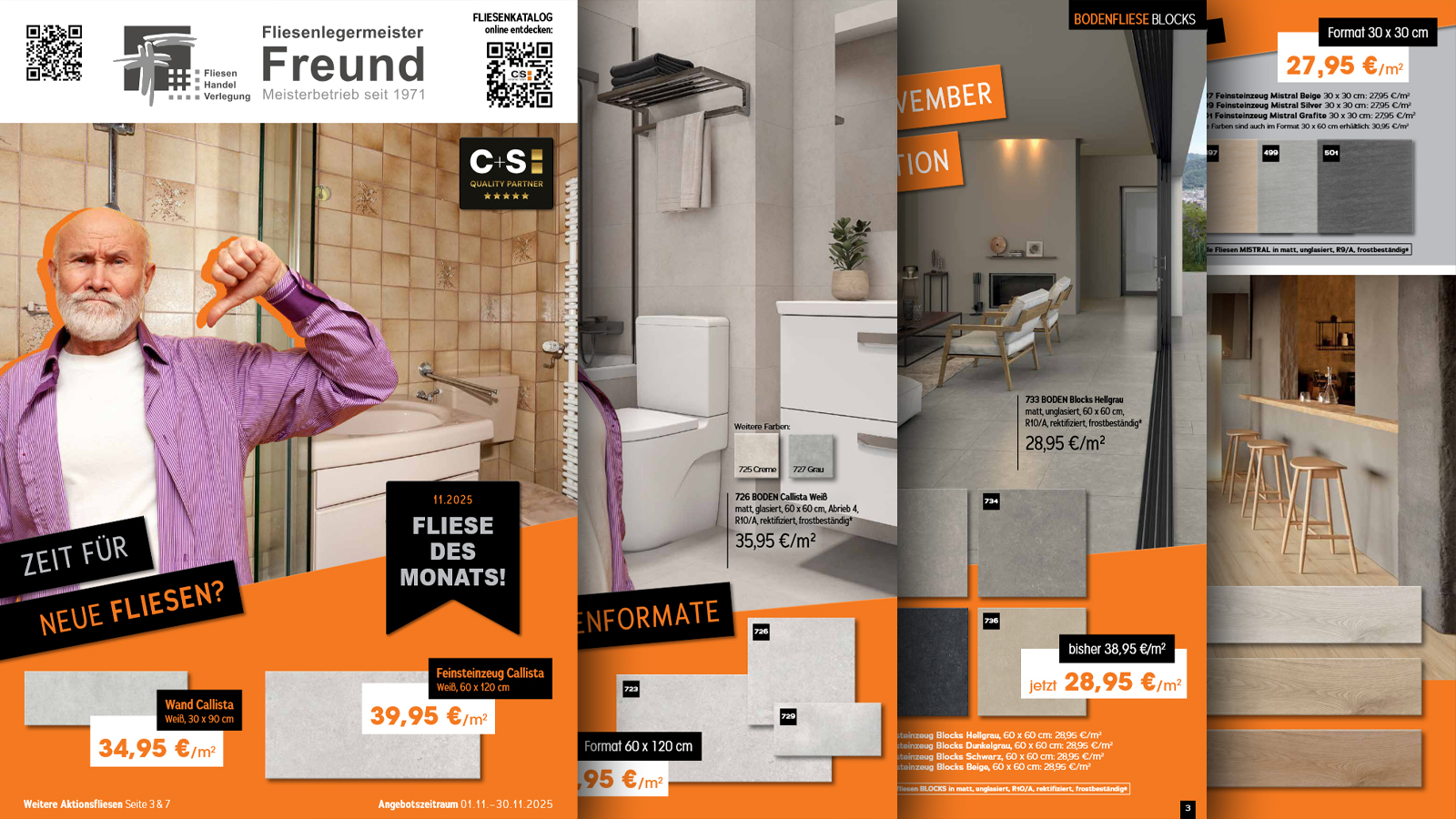 Alle Angebote gelten bis 30. November 2025. Weitere Aktionsfliesen und Details sind im neuen Flyer von Fliesen Freund zu finden, der online oder direkt im Geschäft erhältlich ist.